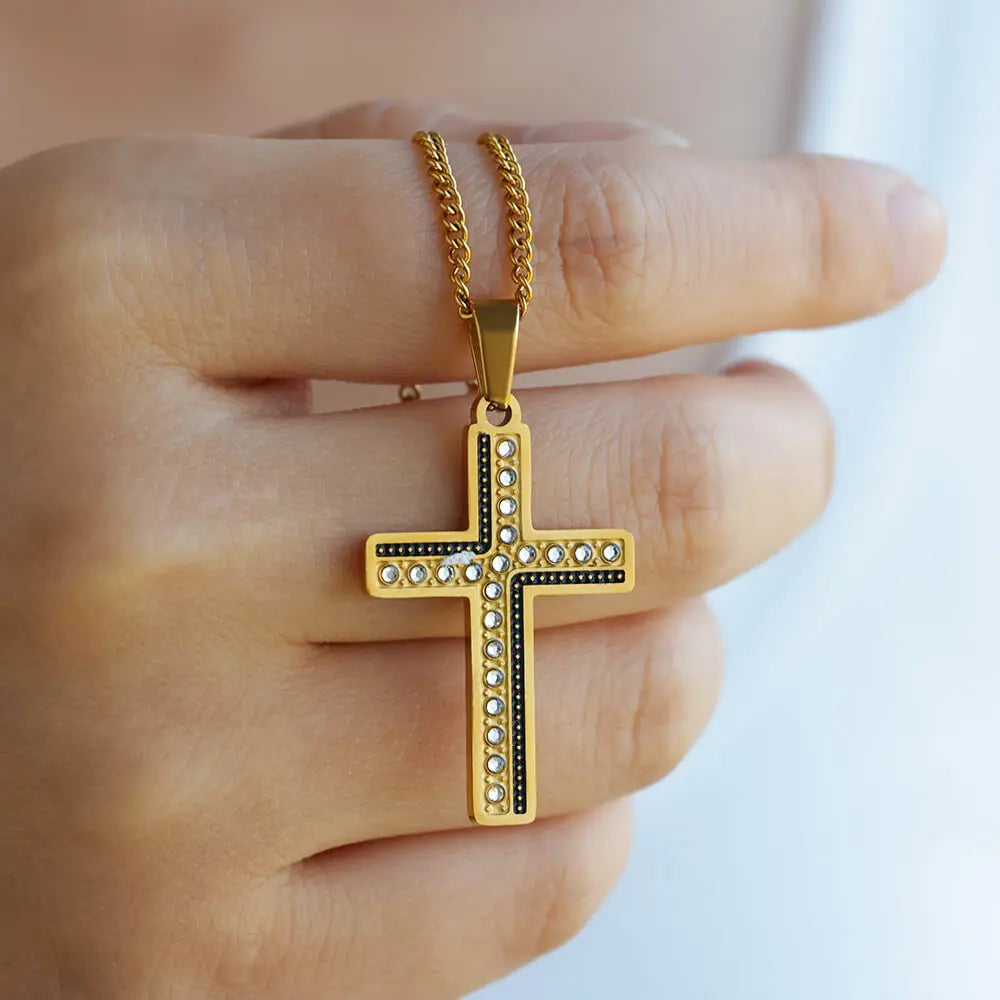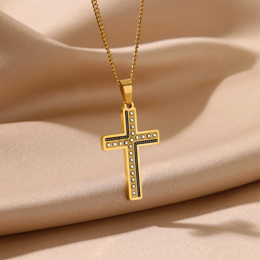 Fashion Vintage Cross Pendant Necklace For Women Stainless Steel Gold Color Zircon Charm Clavicle Chain Neckalce Jewelry Gifts