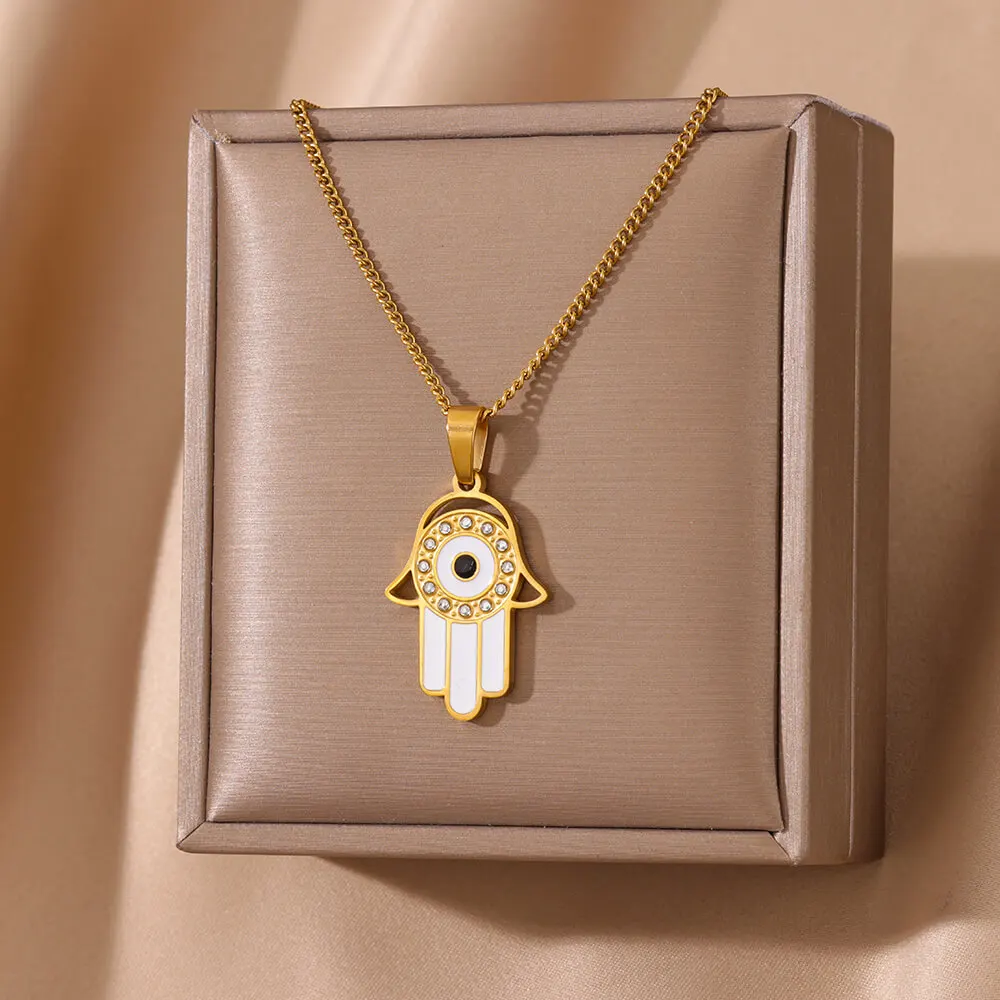 Turkish Lucky Evil Eyes Pendant Necklace for Women Gold Color Stainless Steel Clavicle Chains Vintage Gothic Jewelry Party Gift