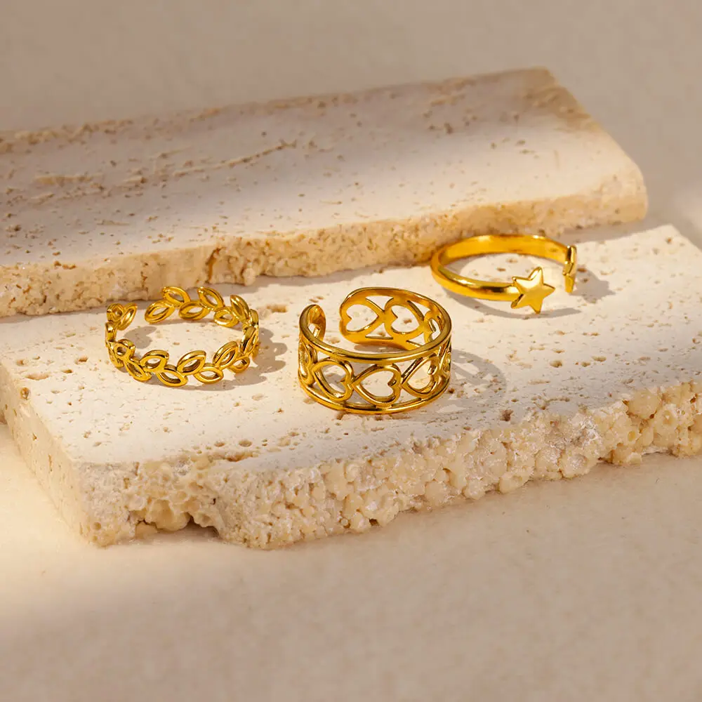 Vintage Flower Rings For Women Gold Color Stainless Steel Open Adjustable Ring Wedding Jewelry Gifts anillos mujer