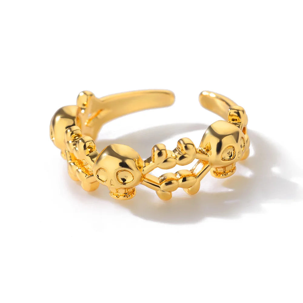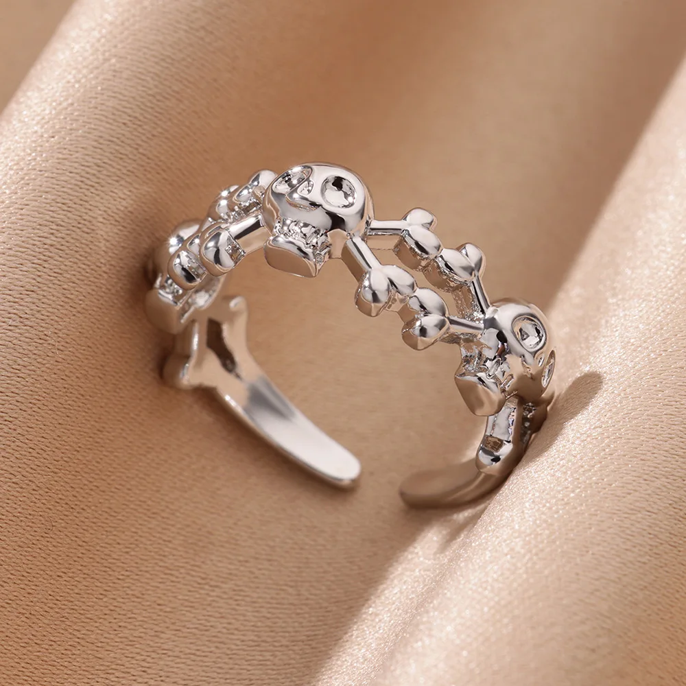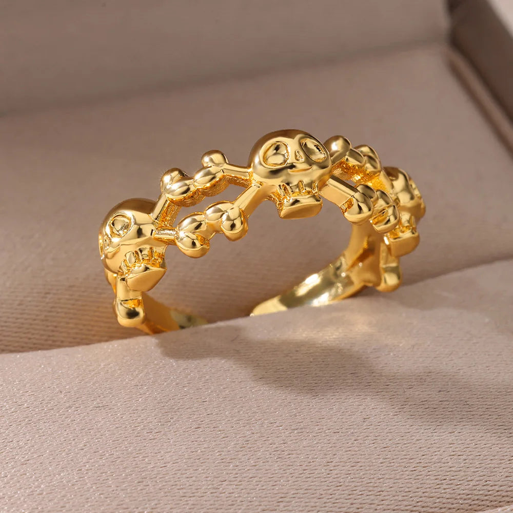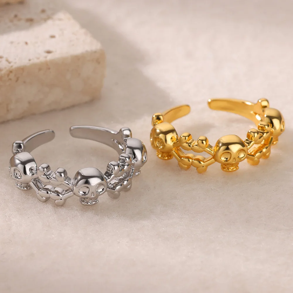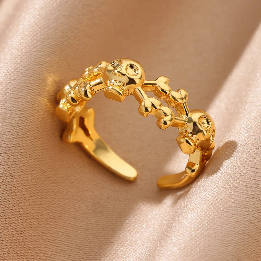 Vintage Punk Skull Ring For Women Stainless Steel Gold Color Hollow Out Open Ring Wedding Birthday Jewelry Gift 2024