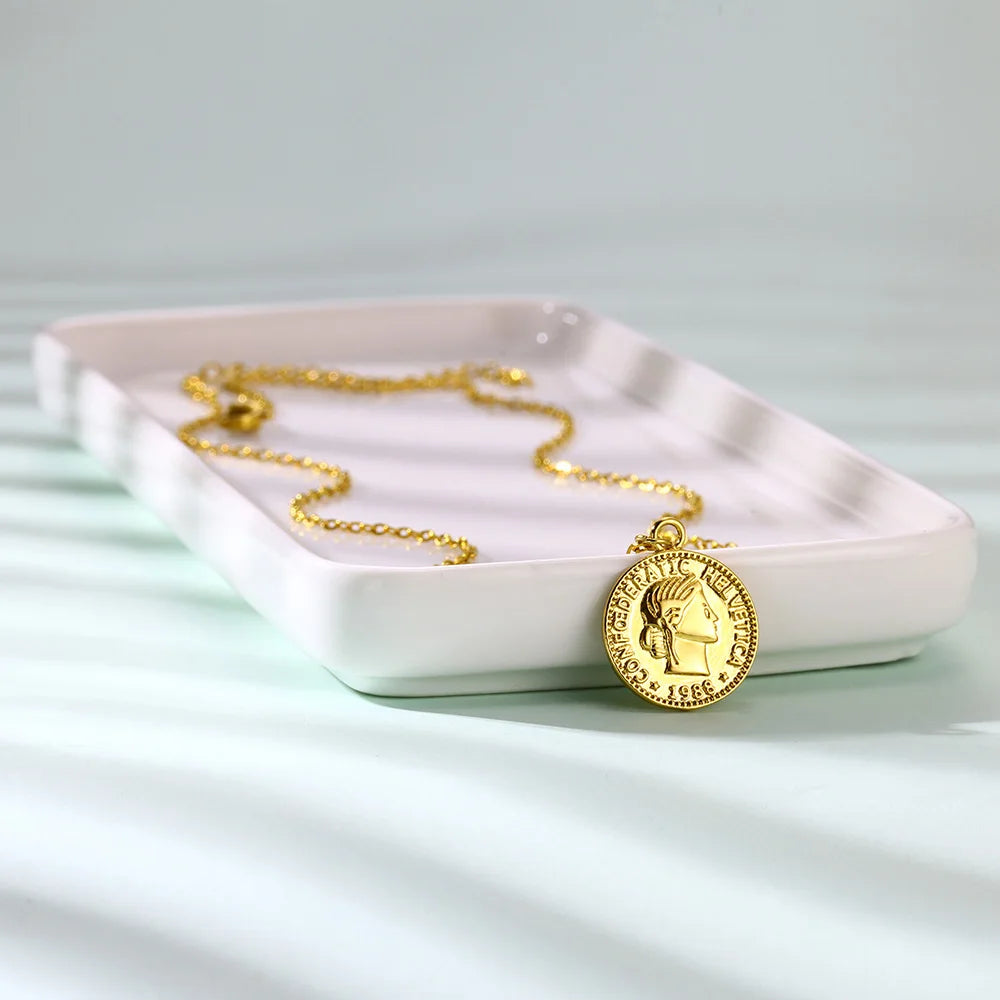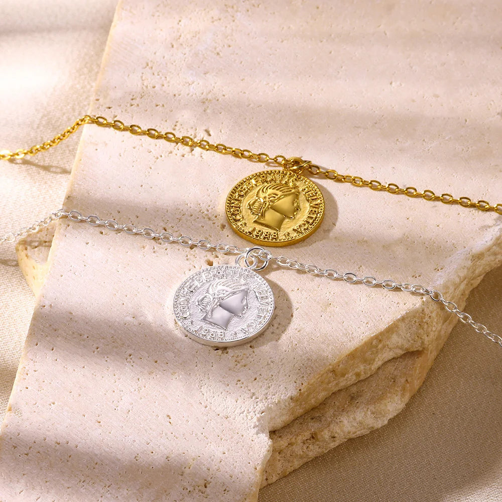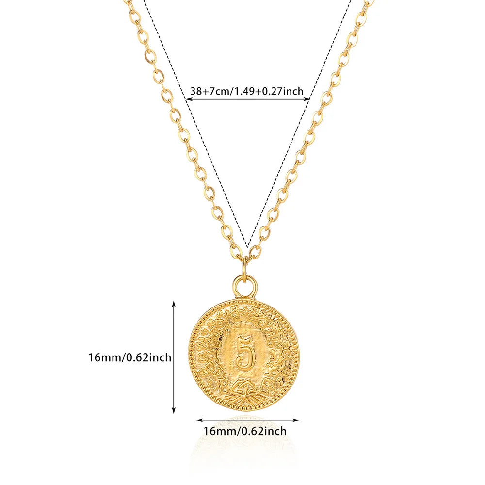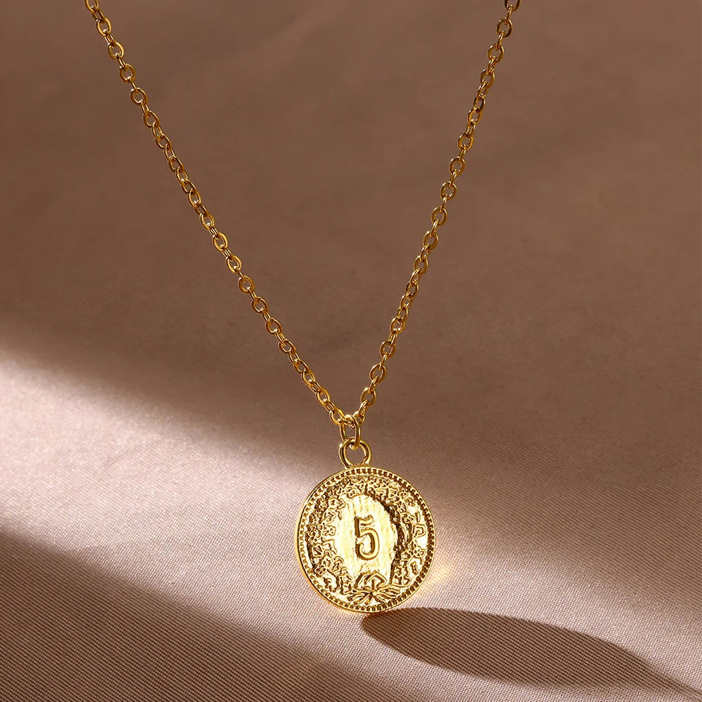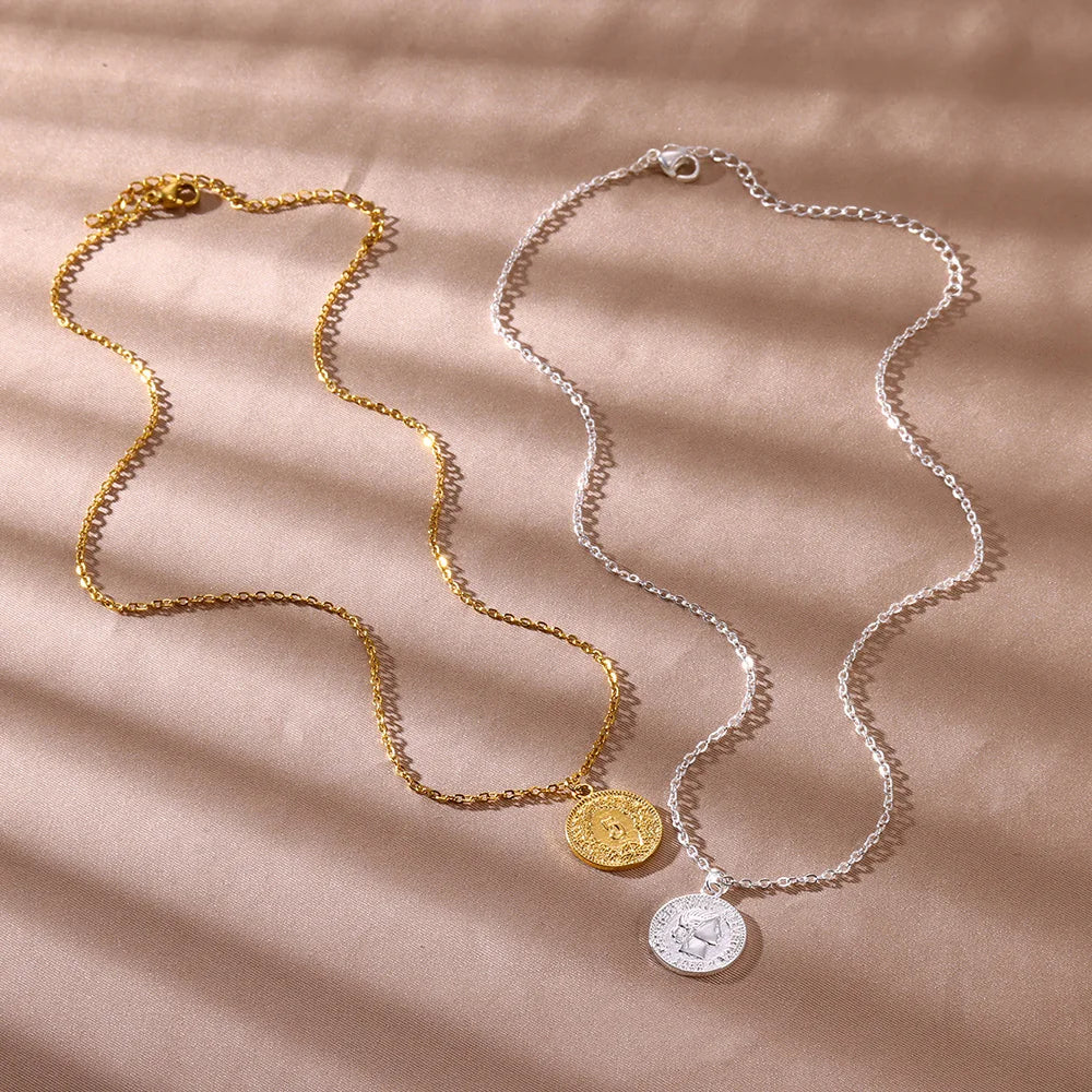 Classic Coin Pendant Necklace For Women Men Stainless Steel Gold Color Clavicle Chain Necklaces Accessories Jewelry