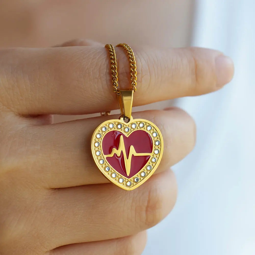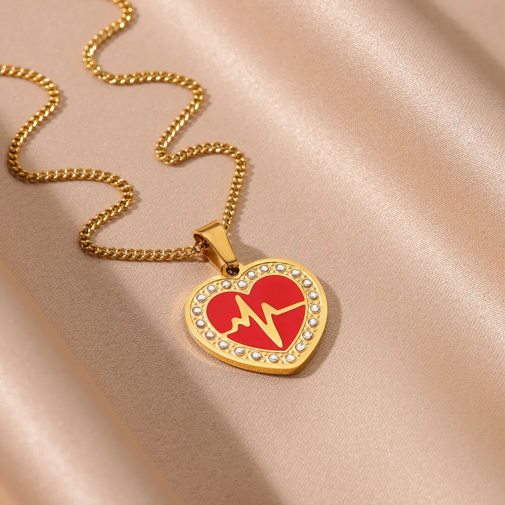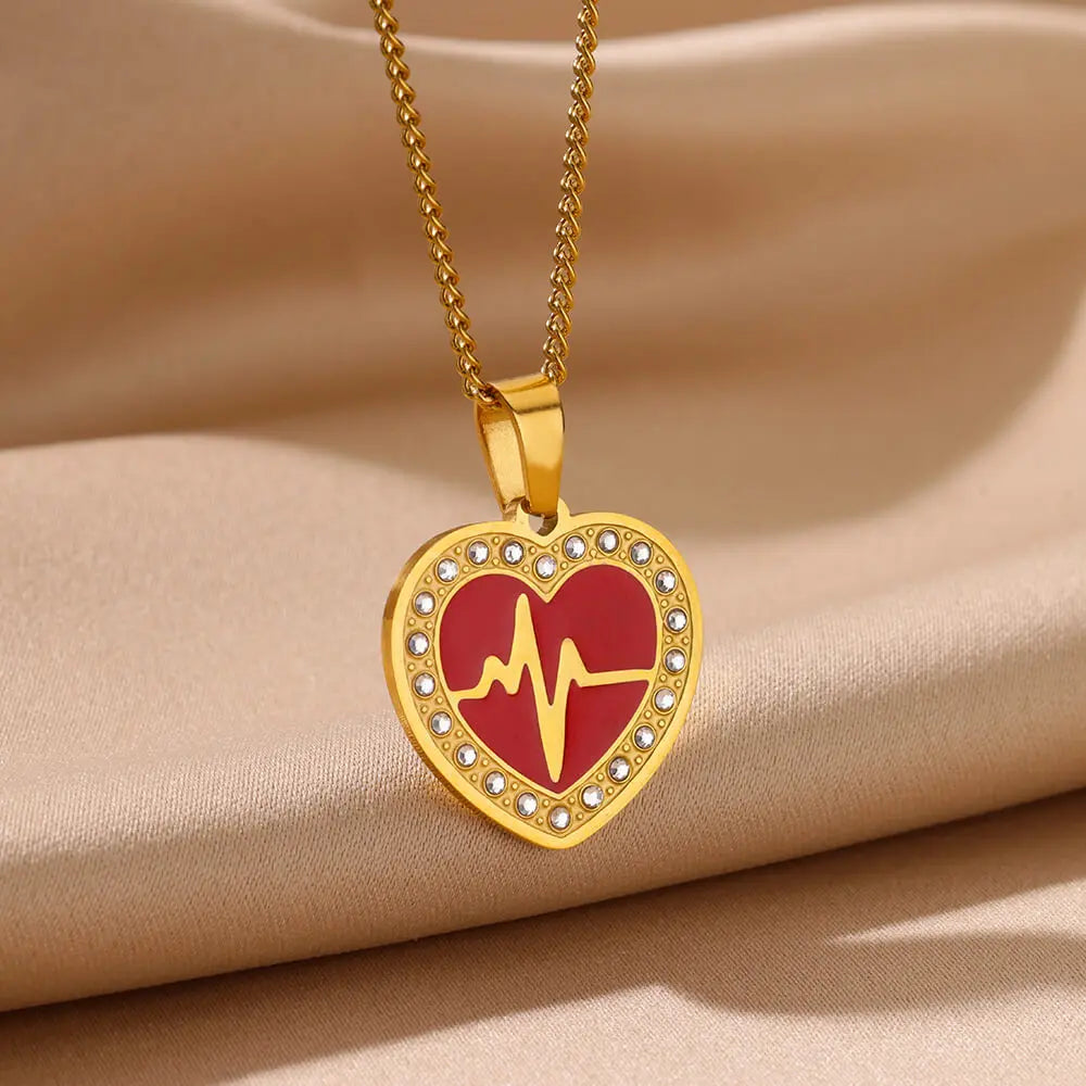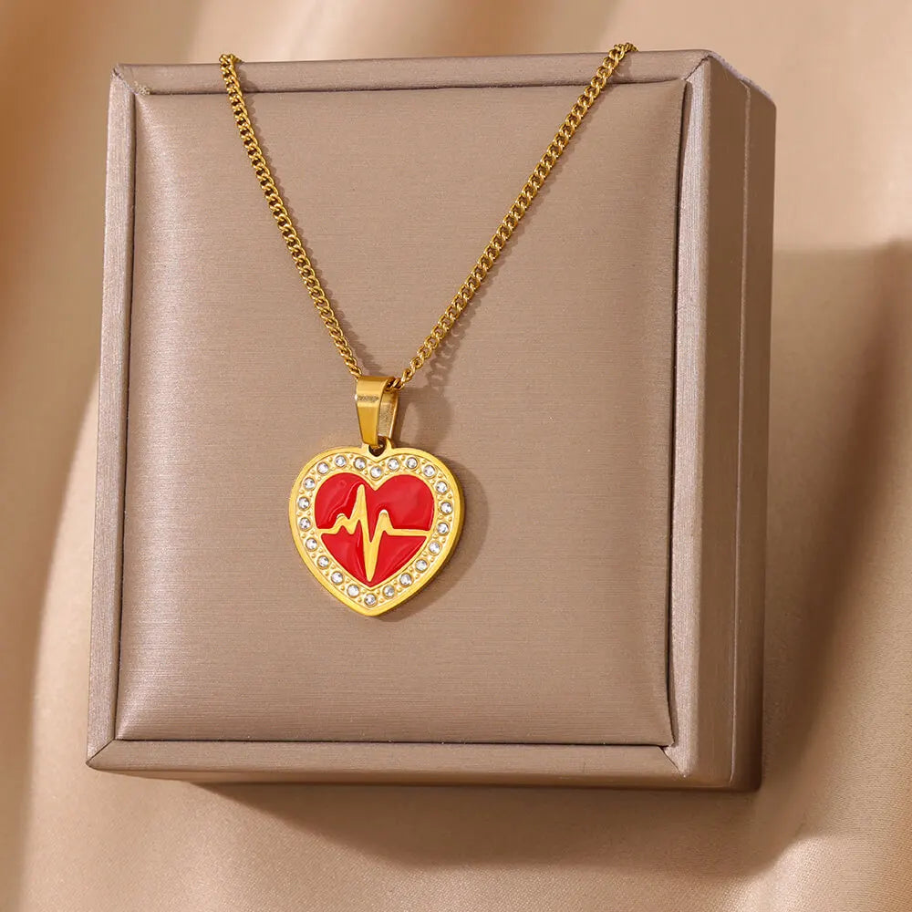 Fashion Heart Pendant Necklaces For Women Gold Color Stainless Steel Chain Heart Ripple Necklace 2024 Trend Jewelry Party Gift