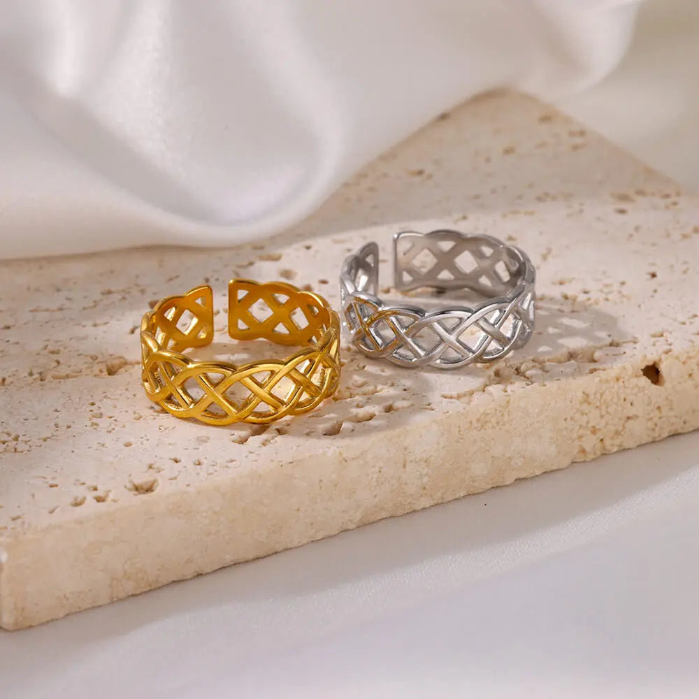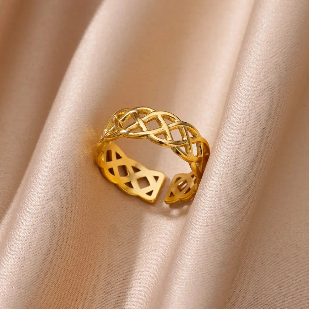 Fashion Stainless Steel Rings for Women Girl Gold Color Hollow Out Geometric Open Finger Ring Female Party Jewelry Gift 2024