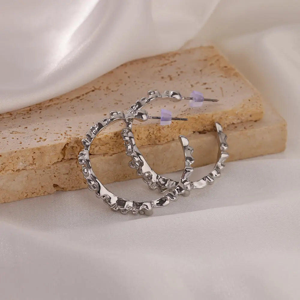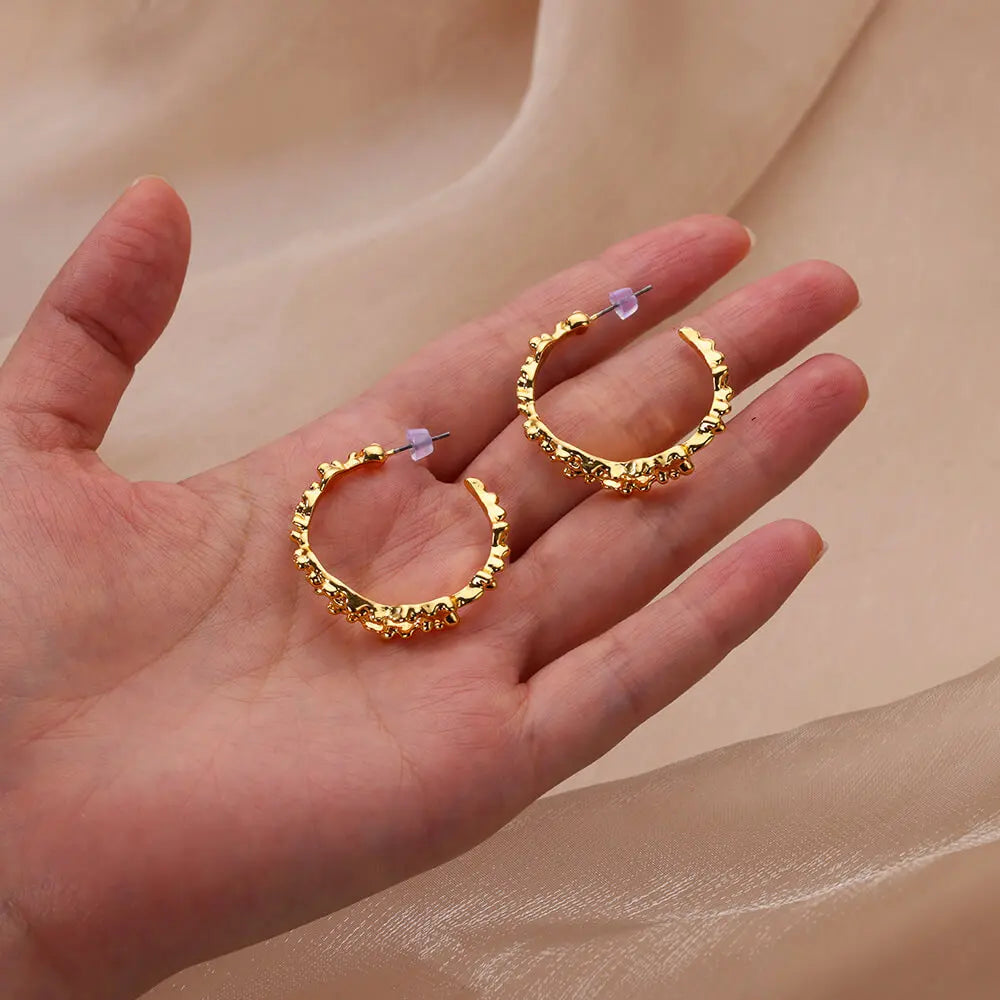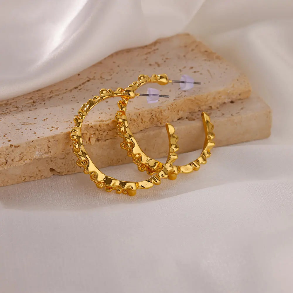 Irregular C Shaped Earrings for Women Gold Color Stainless Steel Geometric Piercing Earrings 2024 New Trend Wedding Jewelry Gift