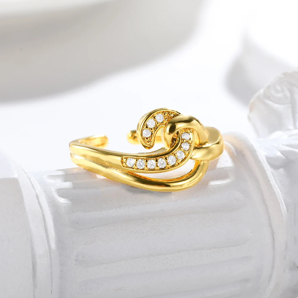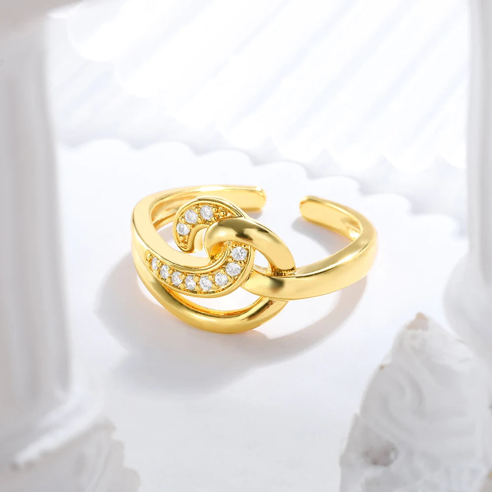 Luxury Zircon Rings for Women Opening Adjustable Stainless Steel Ring Engagement Wedding Jewelry Fashion Girlfriend Gifts