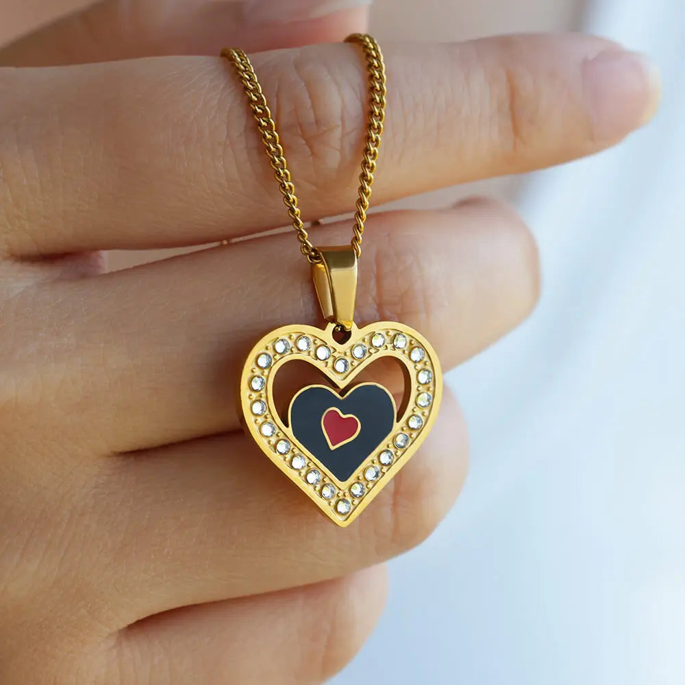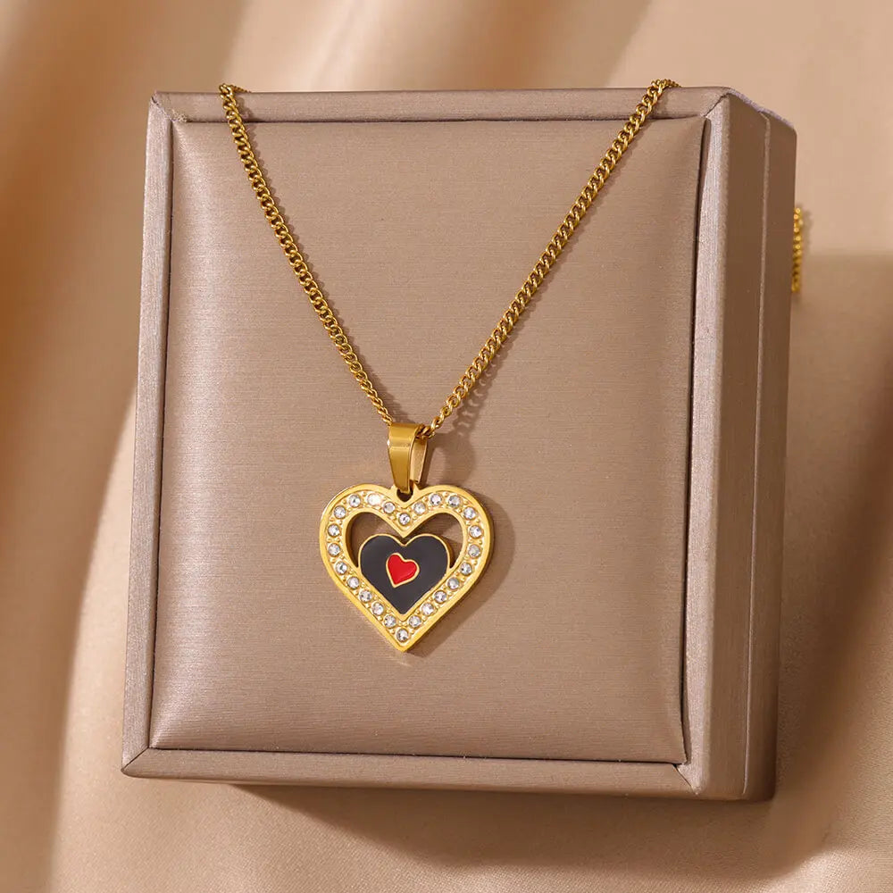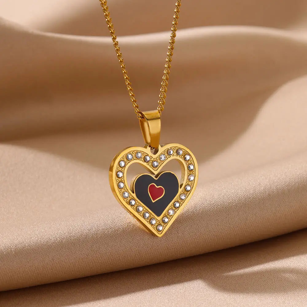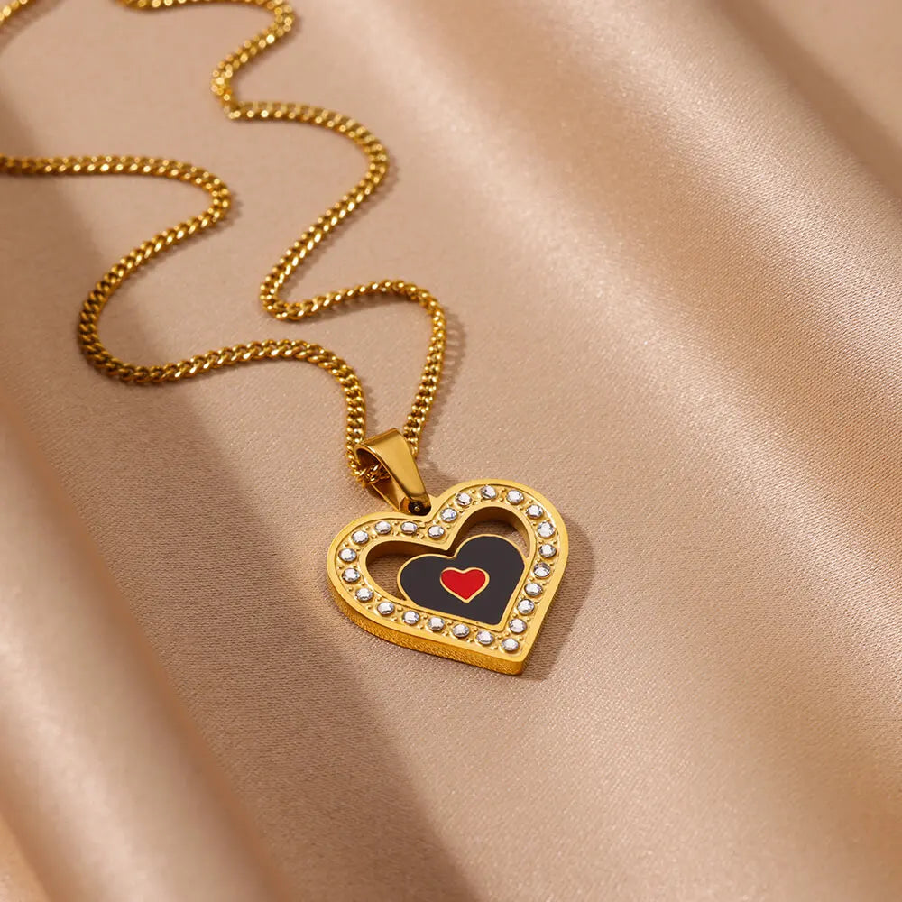 Punk Black Heart Pendant Necklace for Women Gold Color Stainless Steel Hollow Out Charm Clavicle Chain Necklaces Jewelry Gift