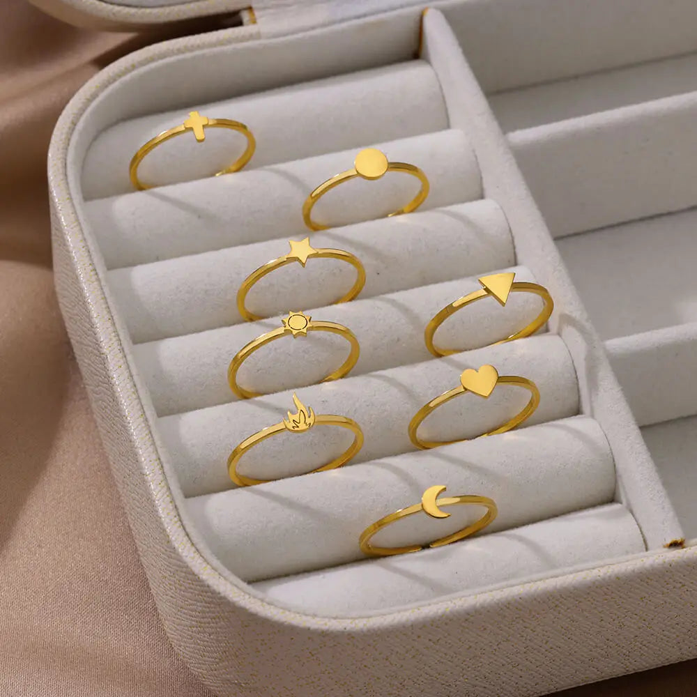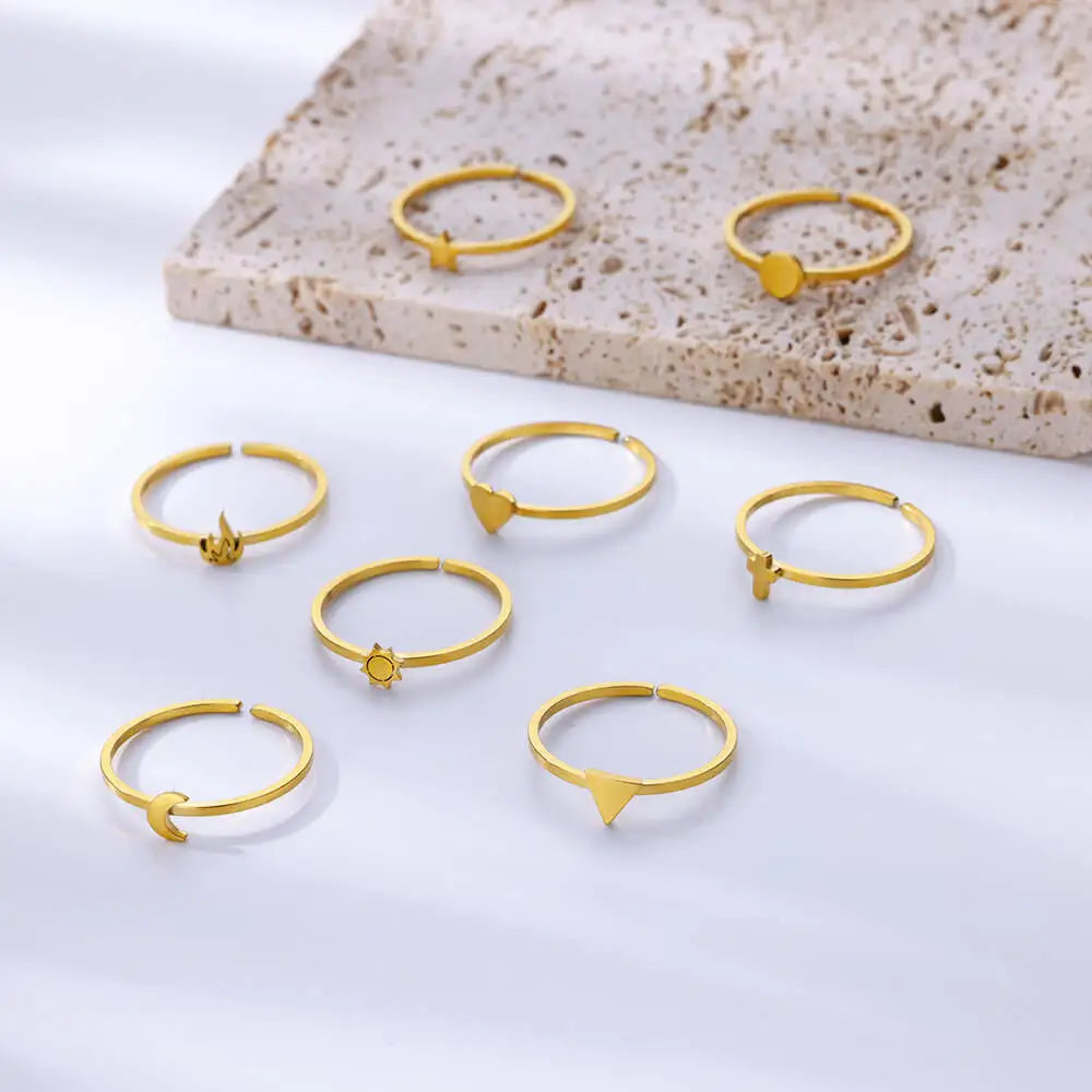 Small Heart Cross Rings For Women Stainless Steel Gold Color Stars Moon Adjustable Finger Ring Jewelry Gifts anillos mujer