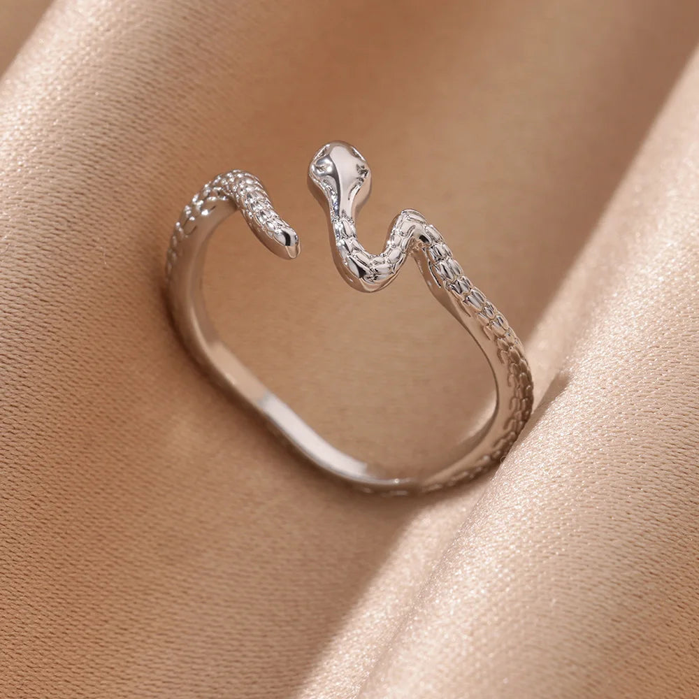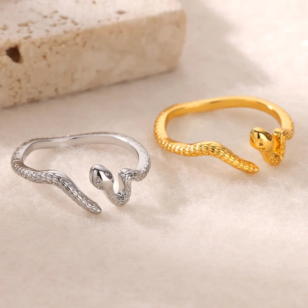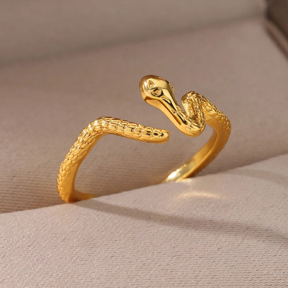 Snake Stainless Steel Gold Color Rings for Women Fashion Snake Adjustable Open Finger Ring Jewelry Wedding Gift 2024 New