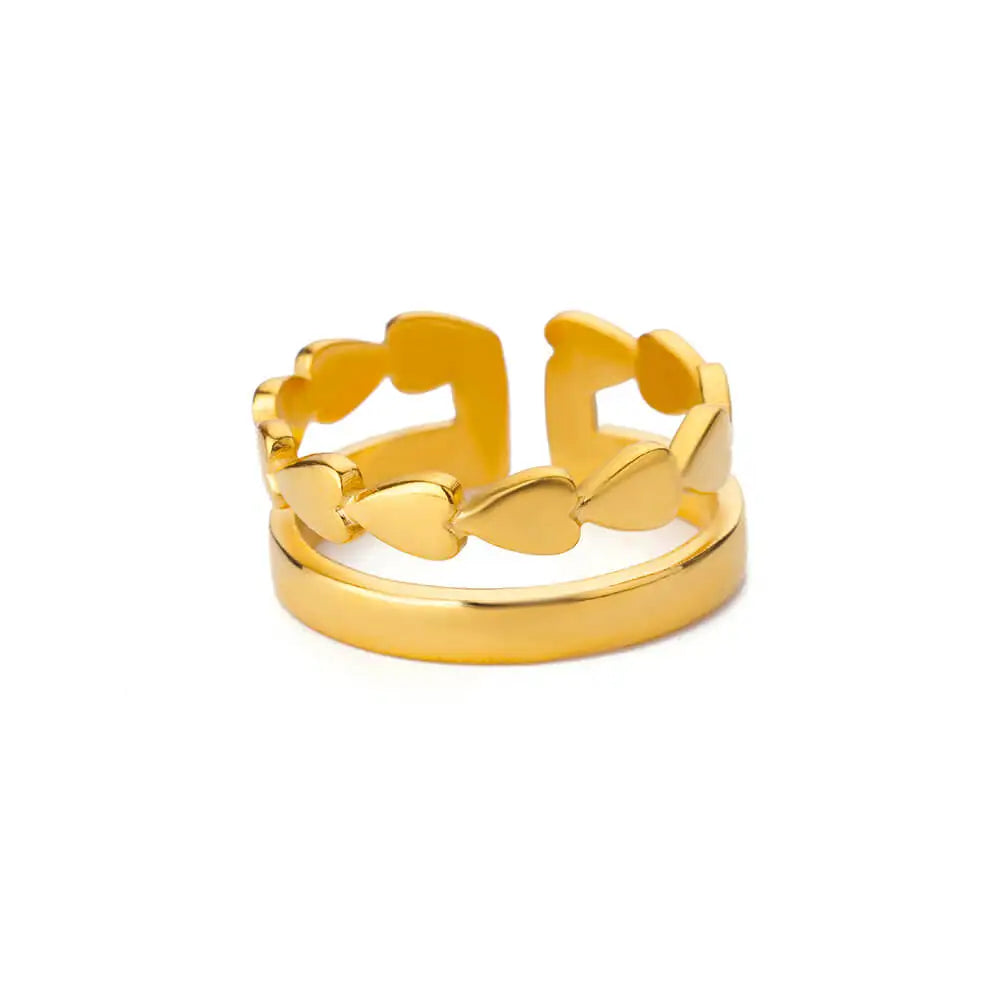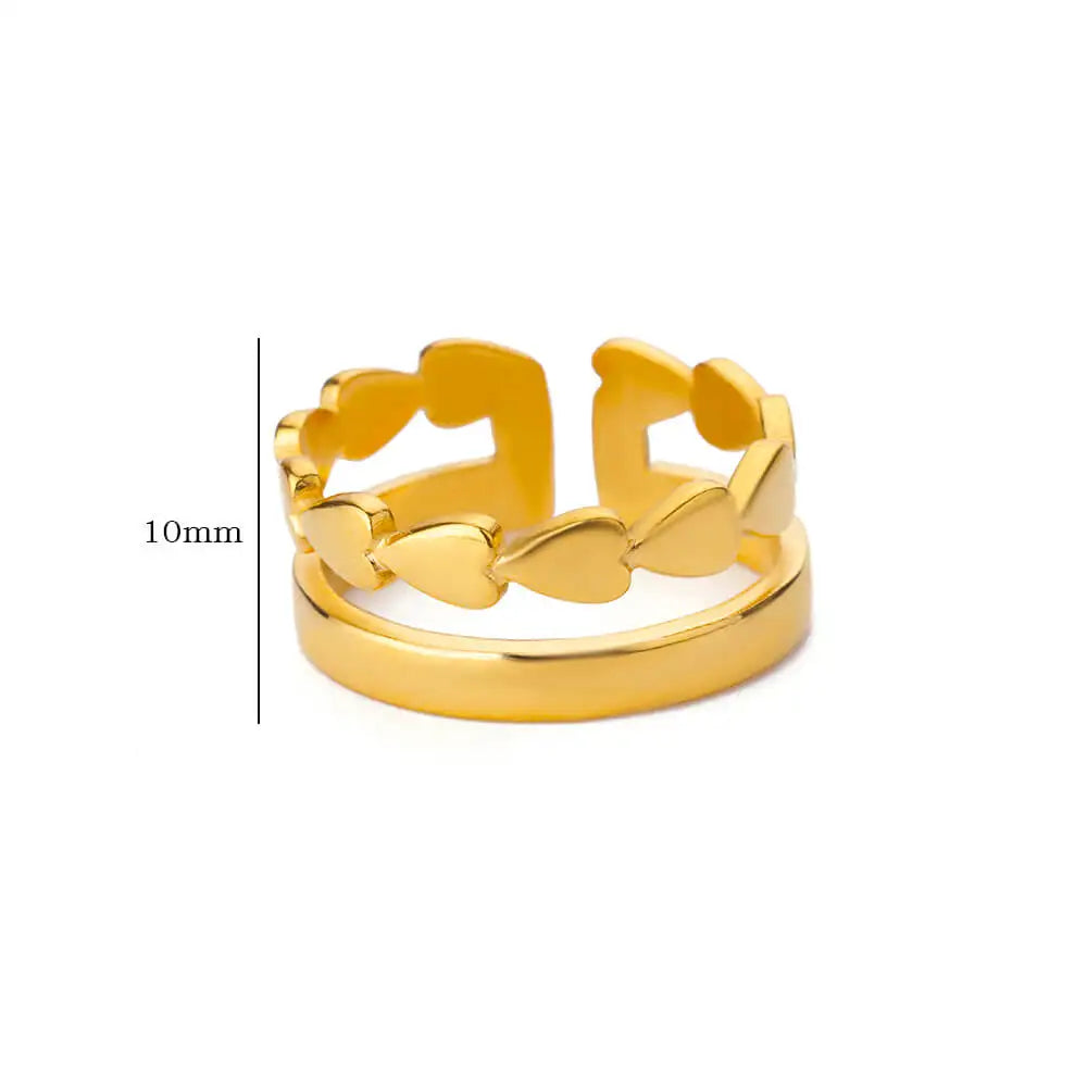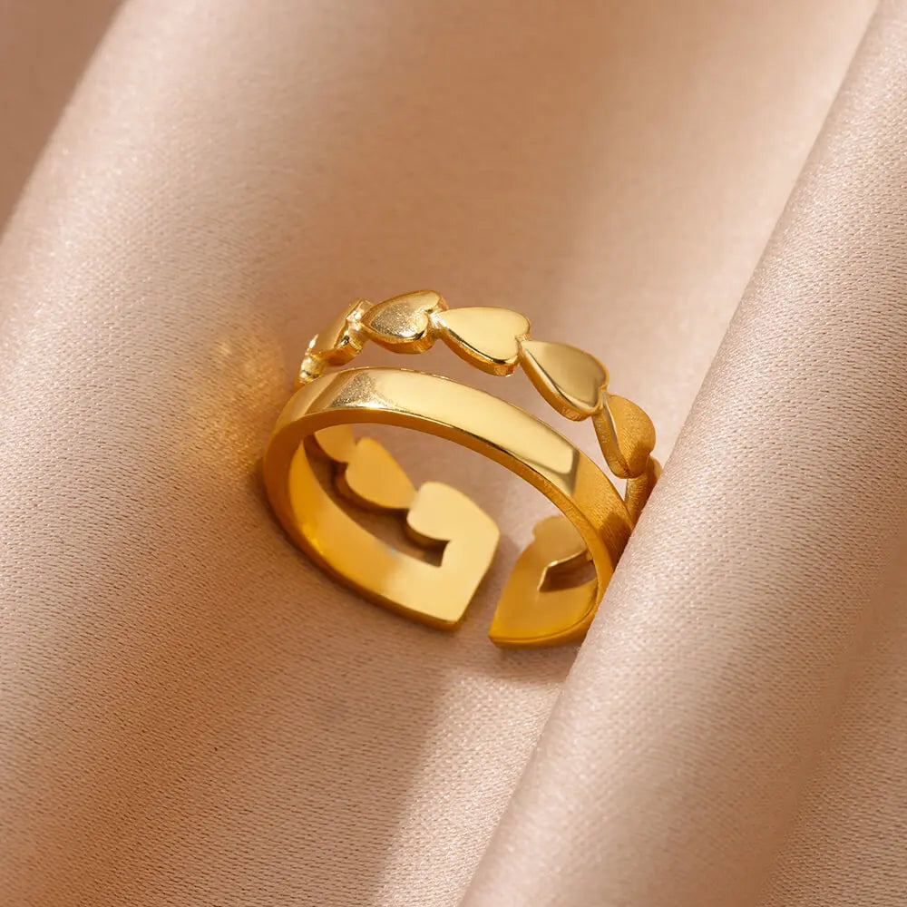 Stainless Steel Double Layers Heart Rings For Women Gold Color Geometric Open Ring Femme Wedding Party Jewelry Gift 2024