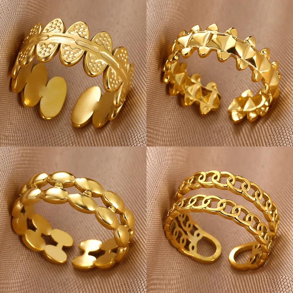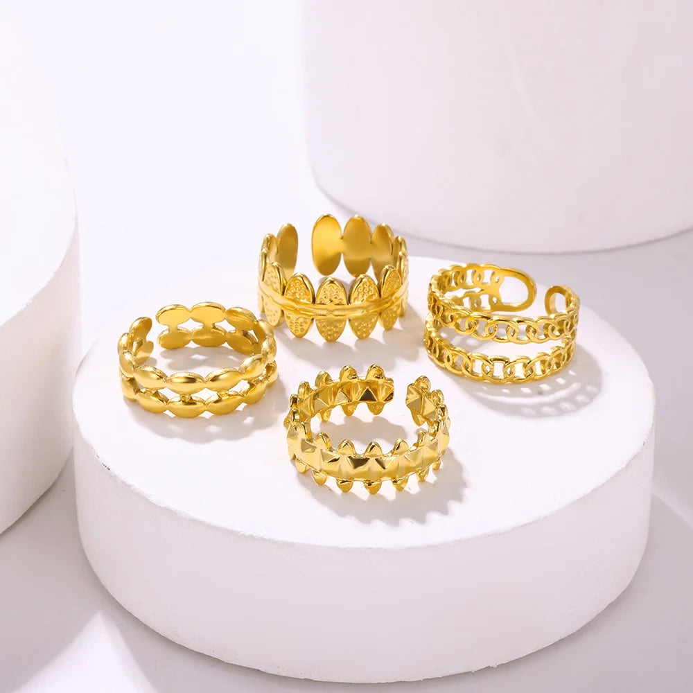 Stainless Steel Geometric Hollow Layered Ring For Women Gold Color Open Adjustable Finger Ring Aesthetic Jewelry Accessories