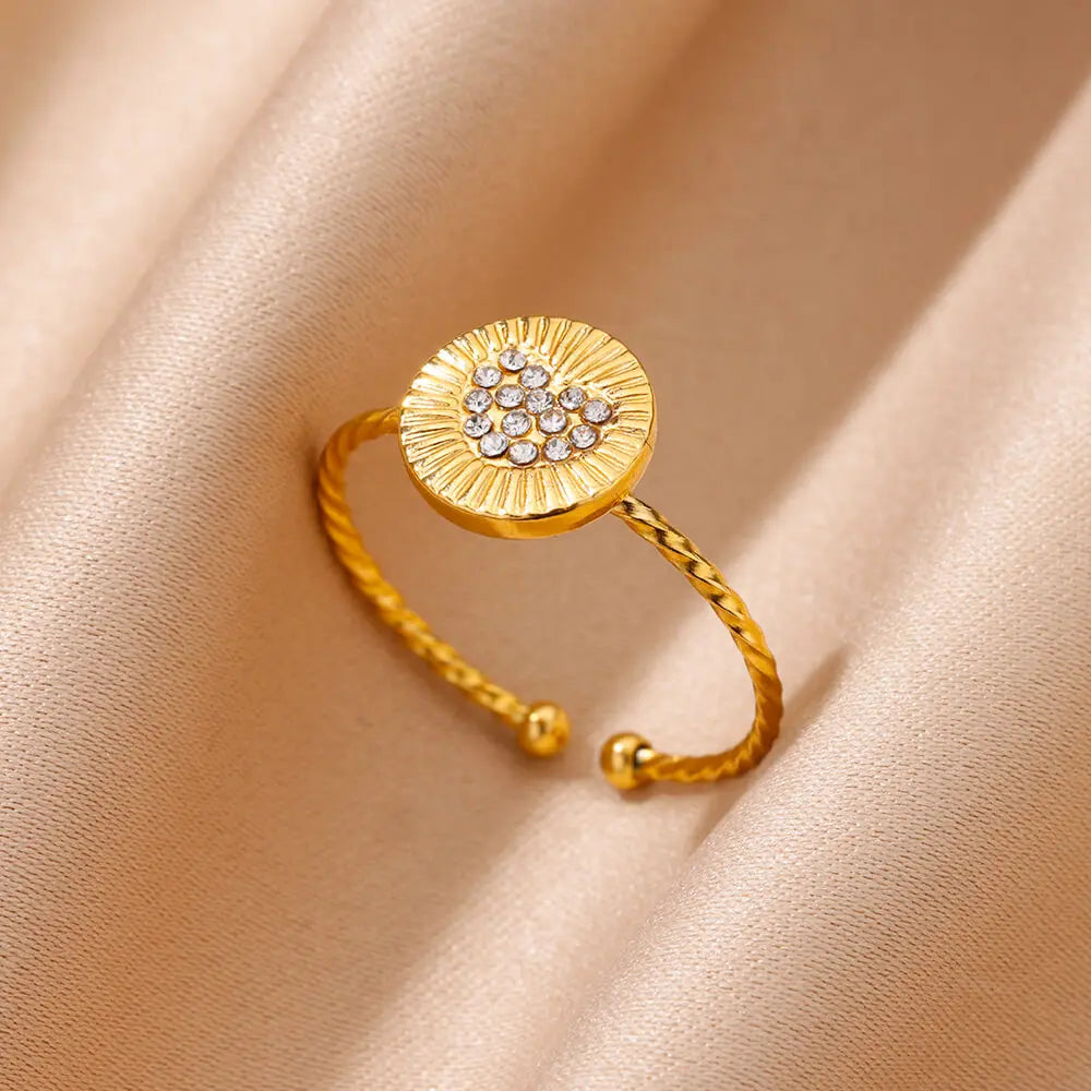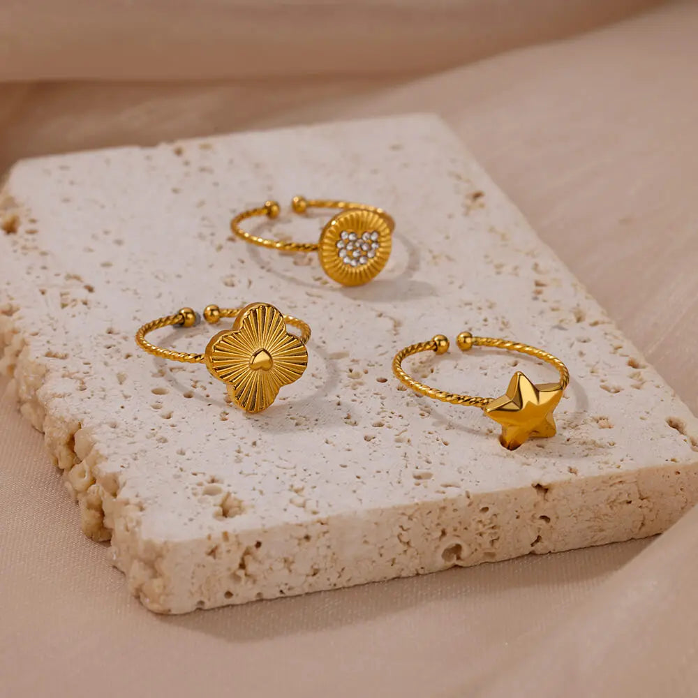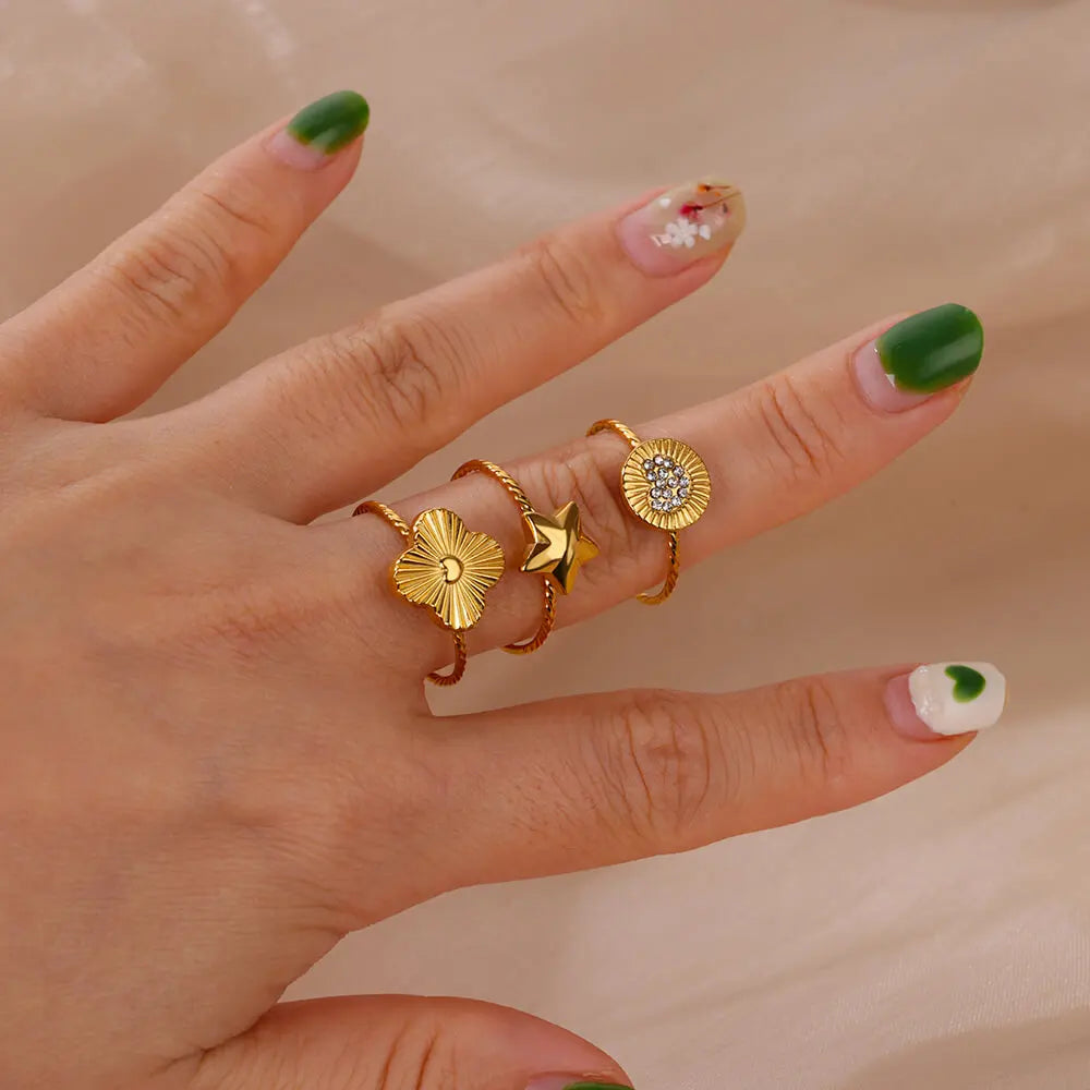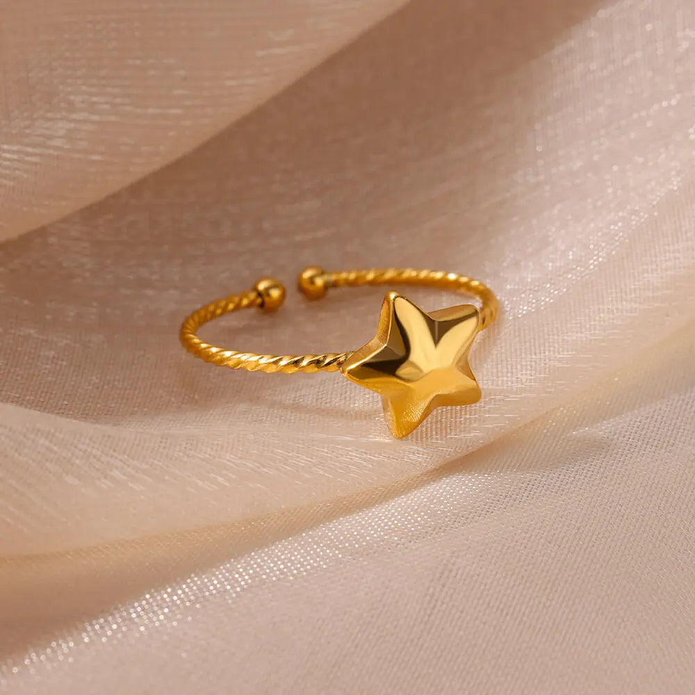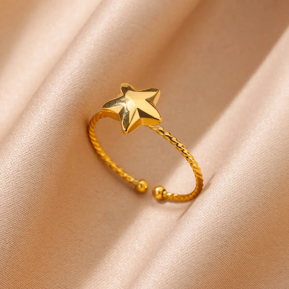 Stainless Steel Gold Color Round Rings for Women Men Fashion Star Open Rings 2024 Trend Aesthetic Jewelry Gift anillos mujer