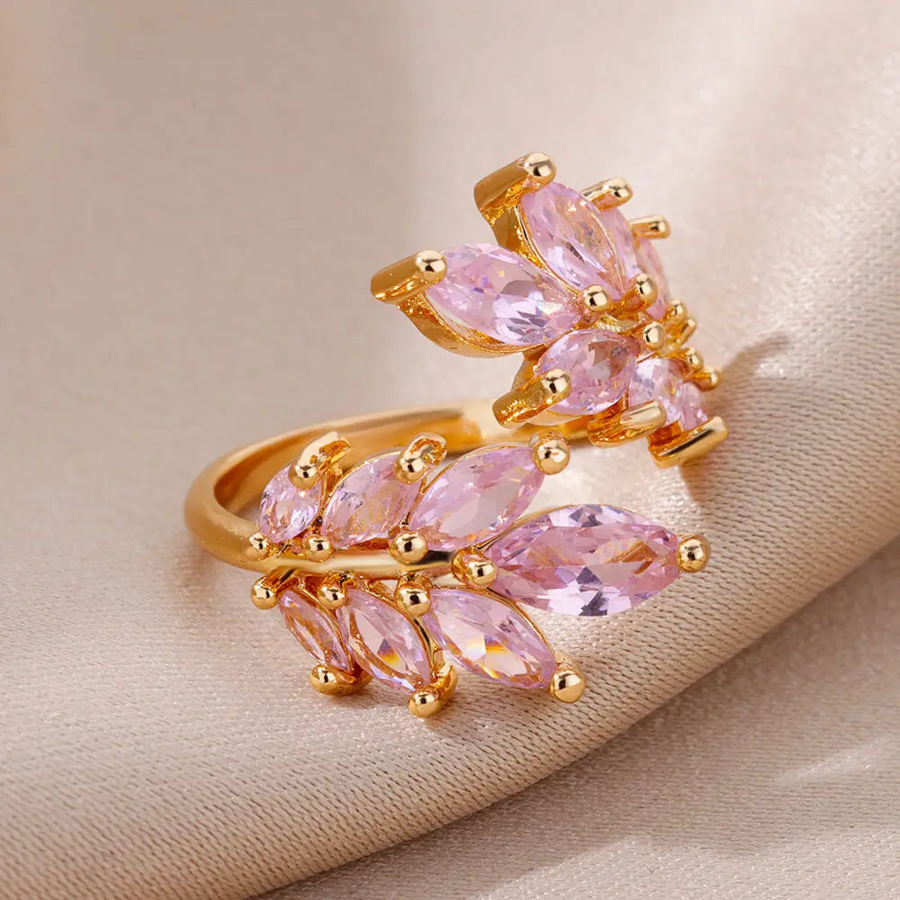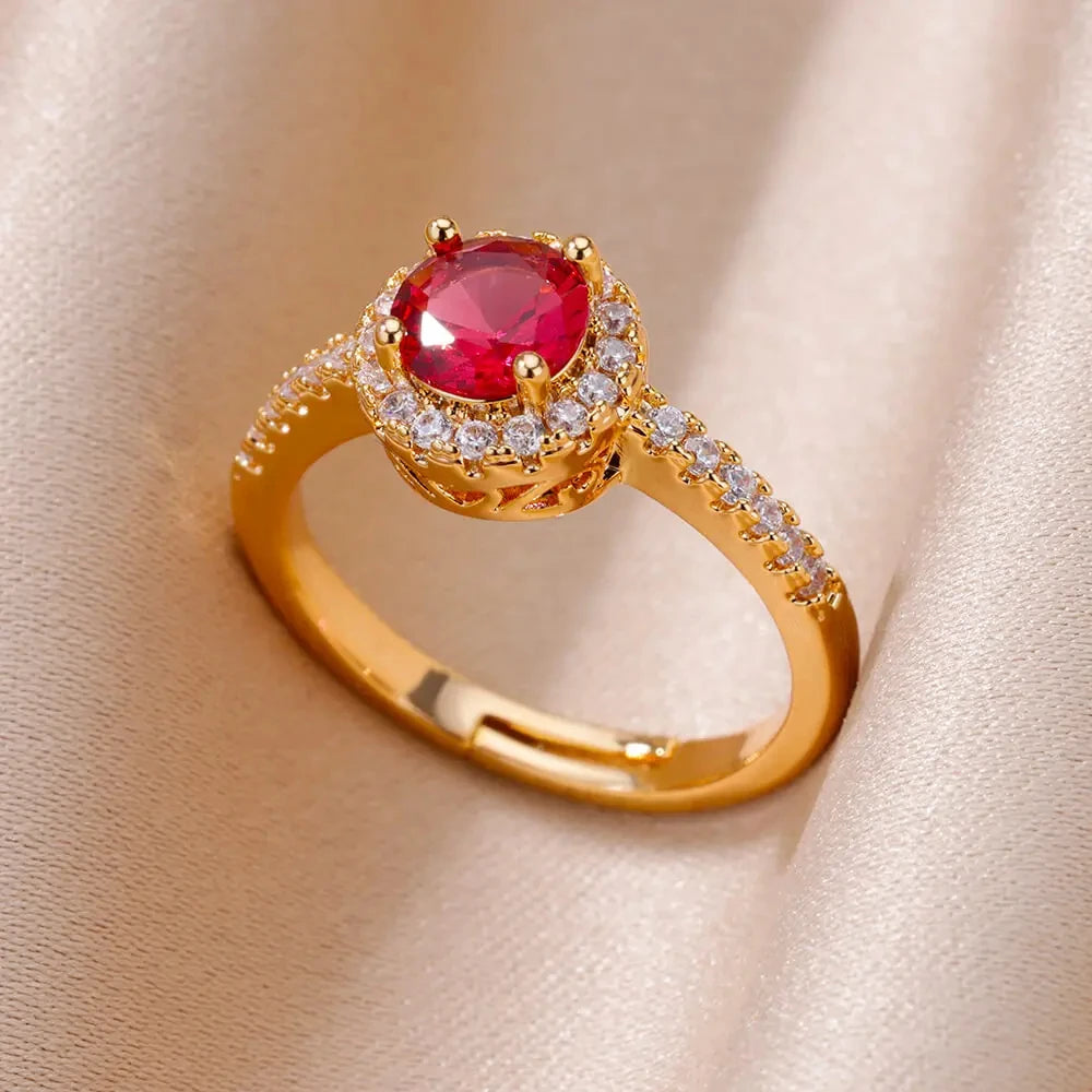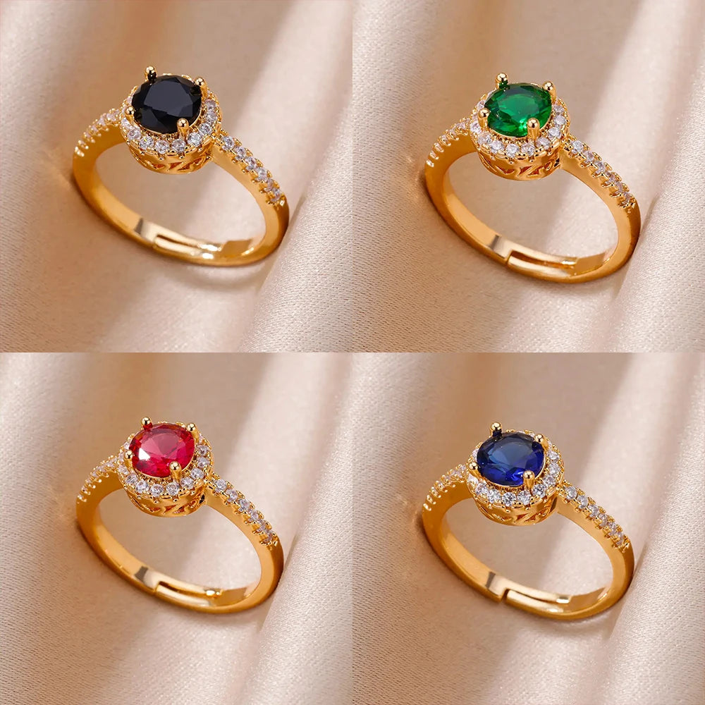 Stainless Steel Green Zircon Rings For Women Gold Color Water Drop Adjustable Ring Femme Wedding Party Jewelry Gift Wholesale