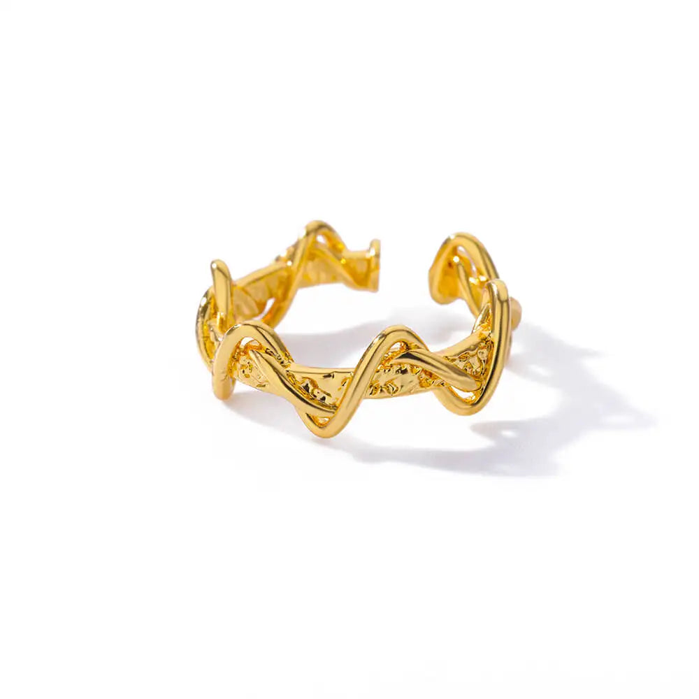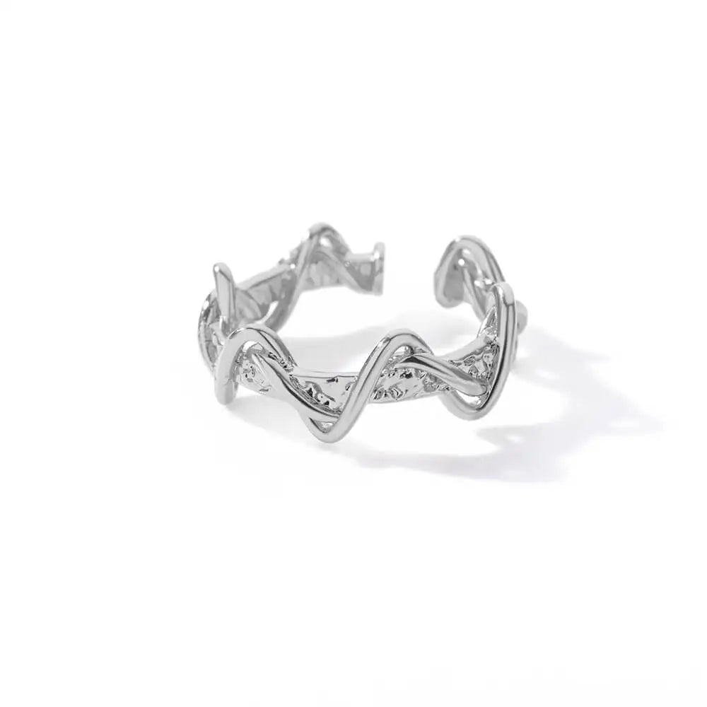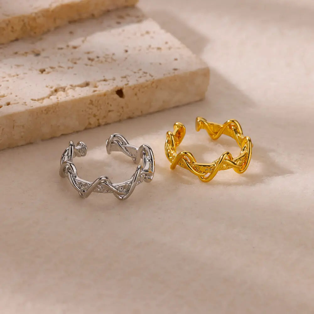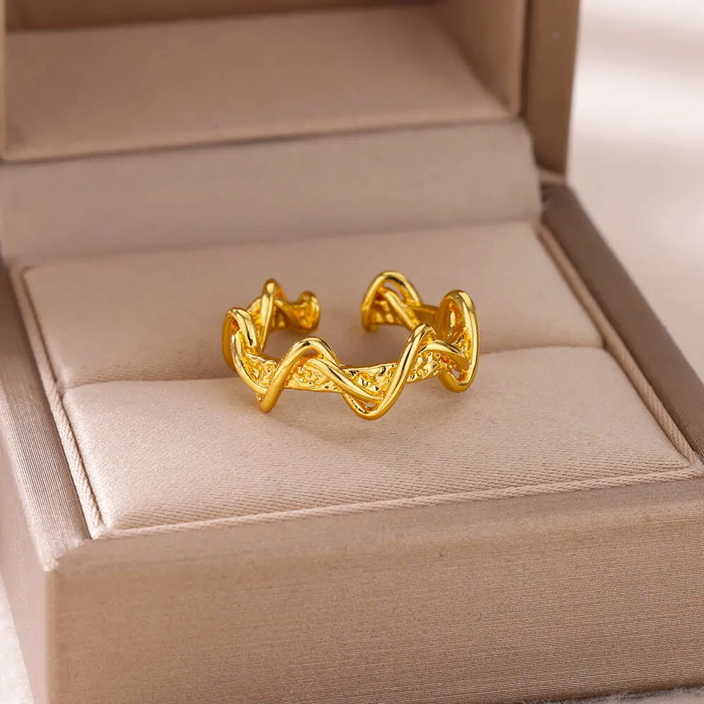 Stainless Steel Wave Rings For Woman Fashion Gold Color Geometric Open Finger Ring Wedding Aesthetic Jewelry Gift