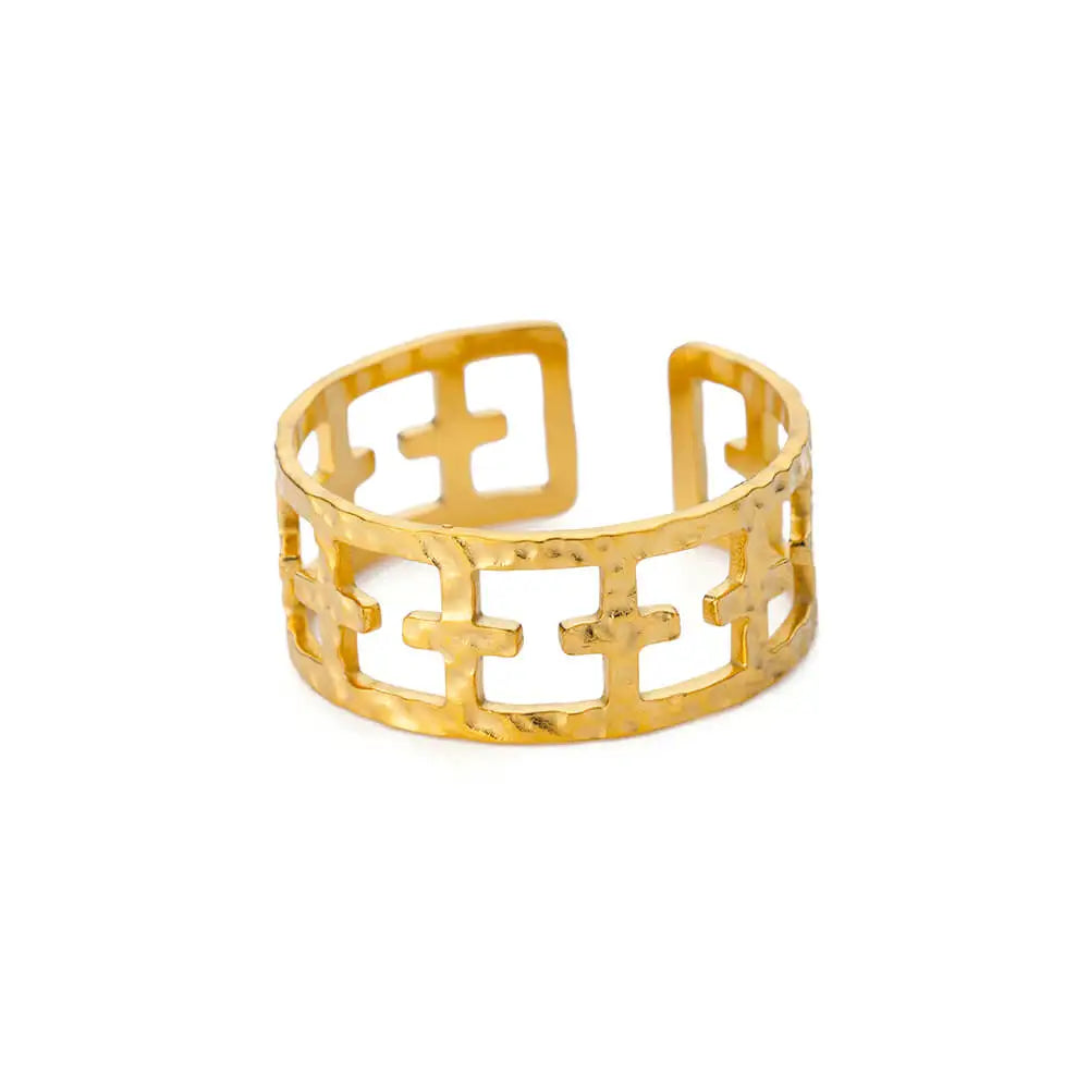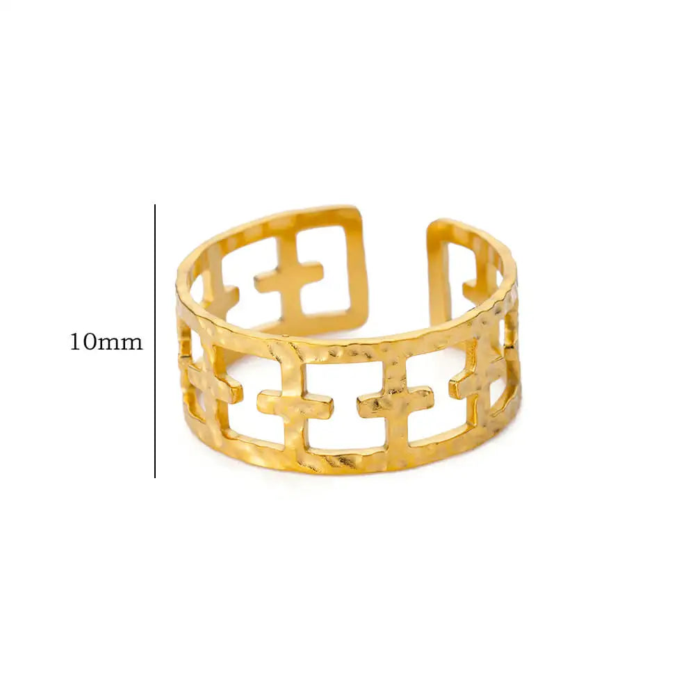 Trendy Gold Color Cross Rings Stainless Steel Double Layer Open Adjustable Finger Ring For Women Party Wedding Jewelry Gift