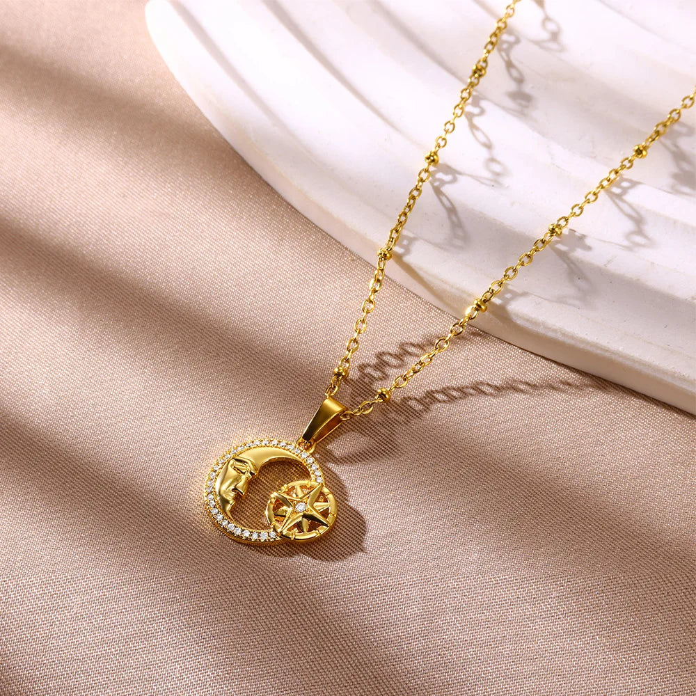 Zircon Moon Star Pendant Necklaces for Women Gold Color Stainless Steel Tree Butterfly Neckalce 2024 Trend Party Wedding Jewelry