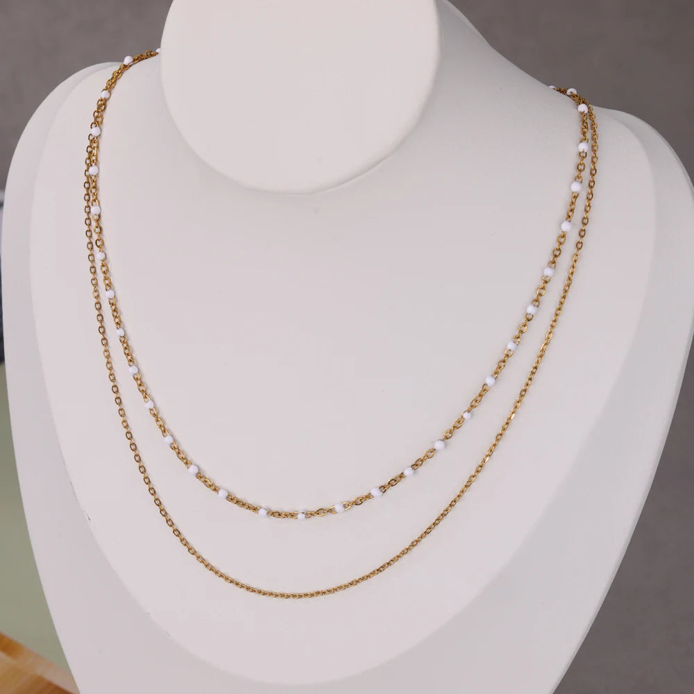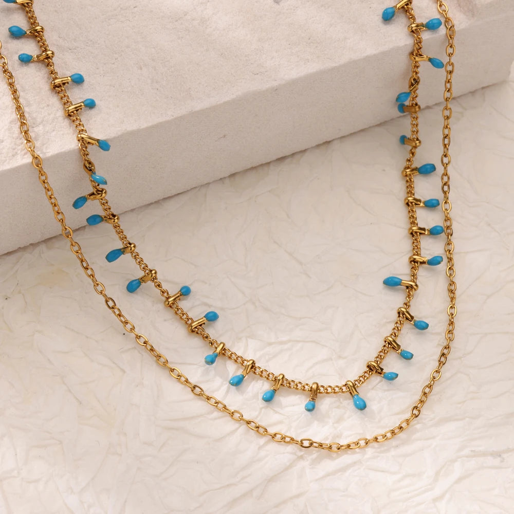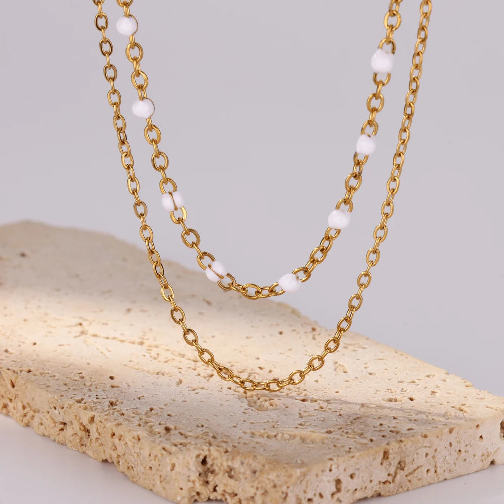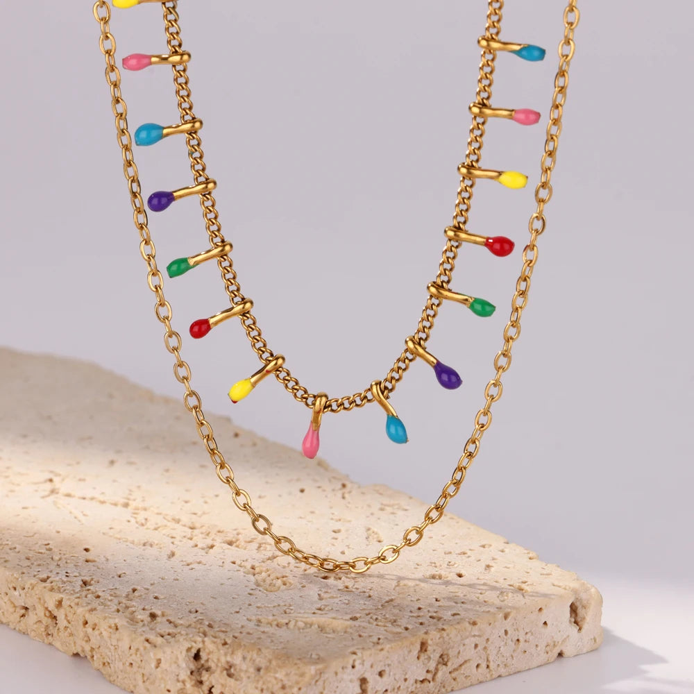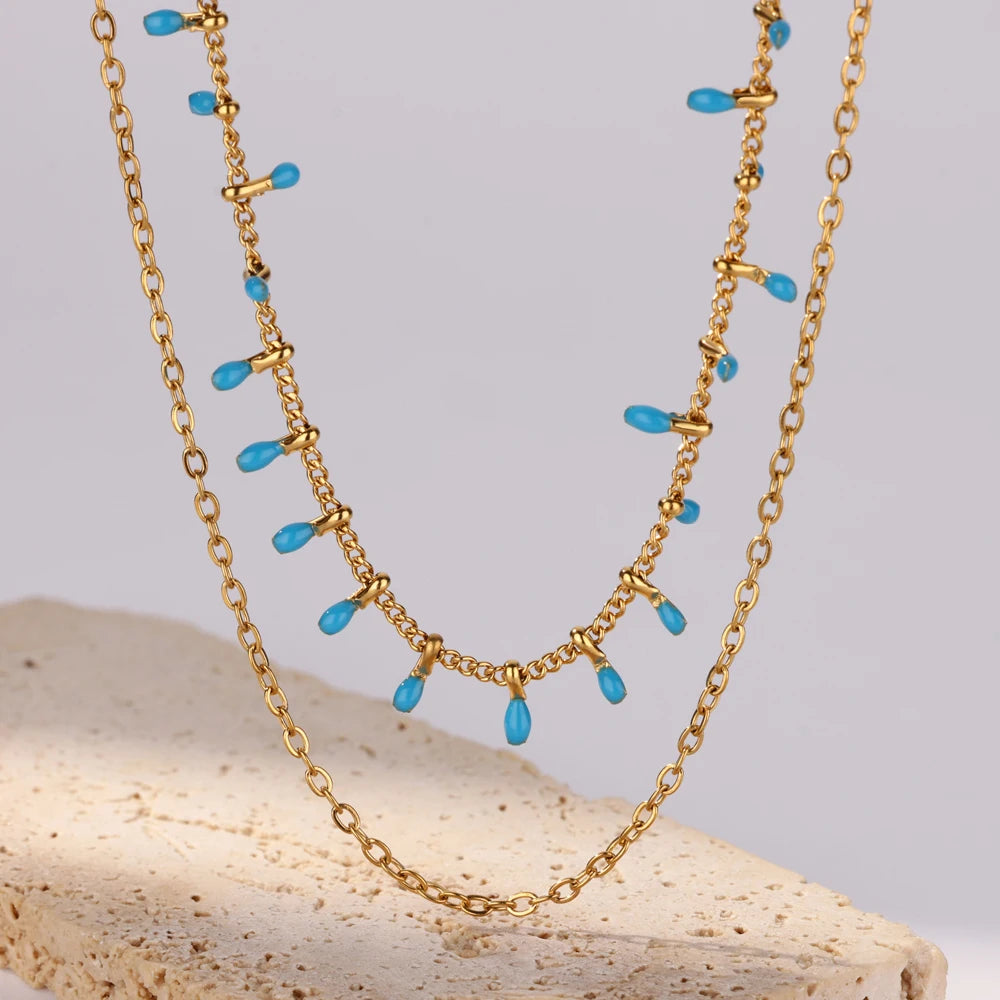 Double Layer Bohemian Colorful Bead Necklace For Women Stainless Steel Gold Color Clavicle Chain Aesthetic Boho Jewelry Gifts