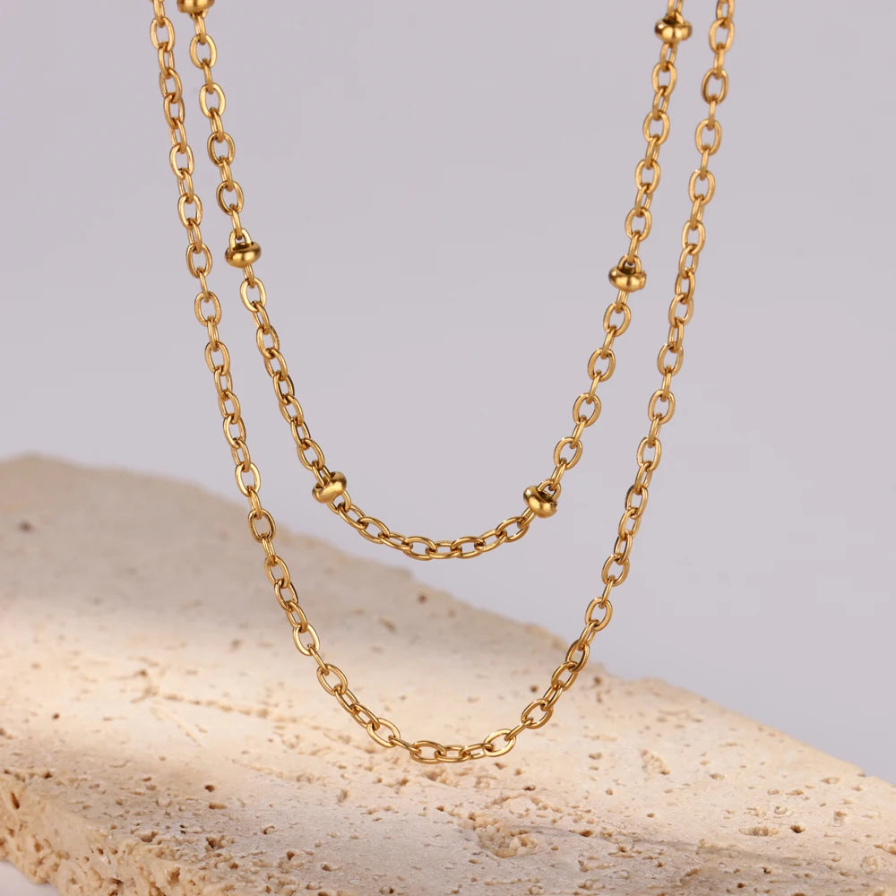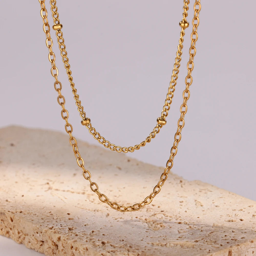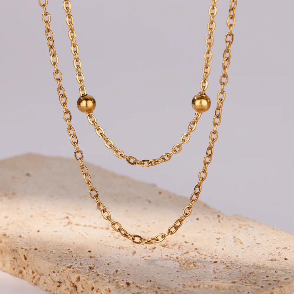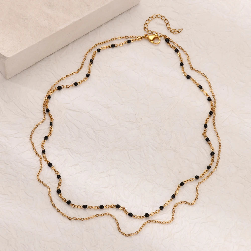 Double Layer Bohemian Colorful Bead Necklace For Women Stainless Steel Gold Color Clavicle Chain Aesthetic Boho Jewelry Gifts