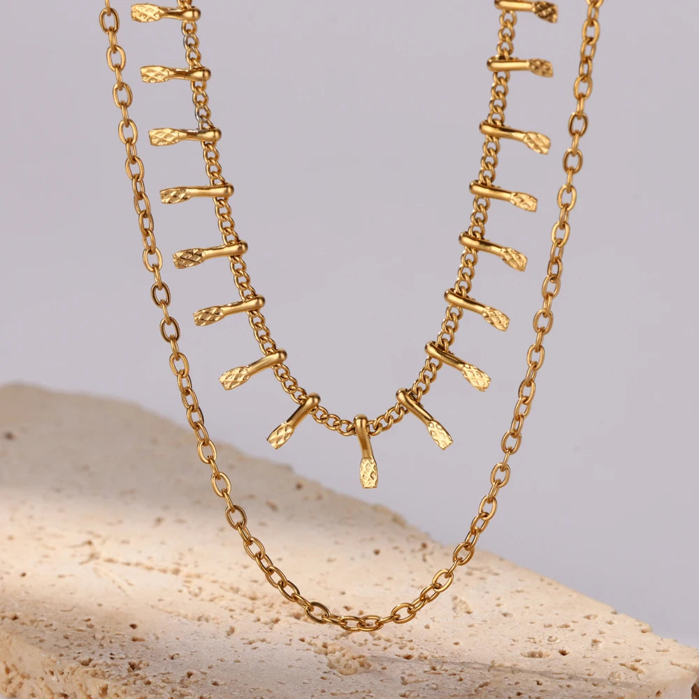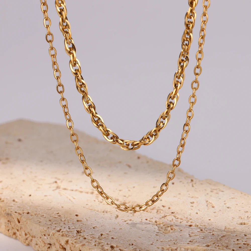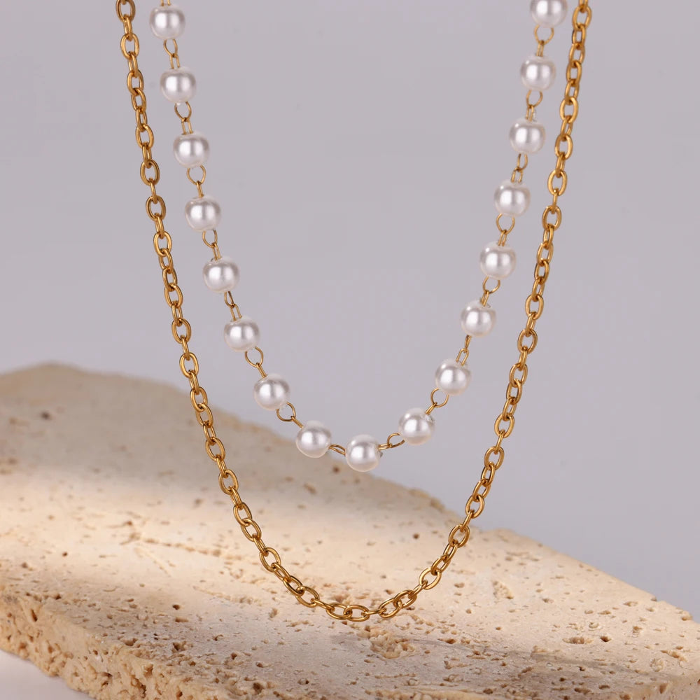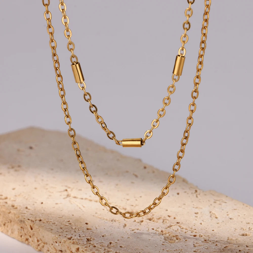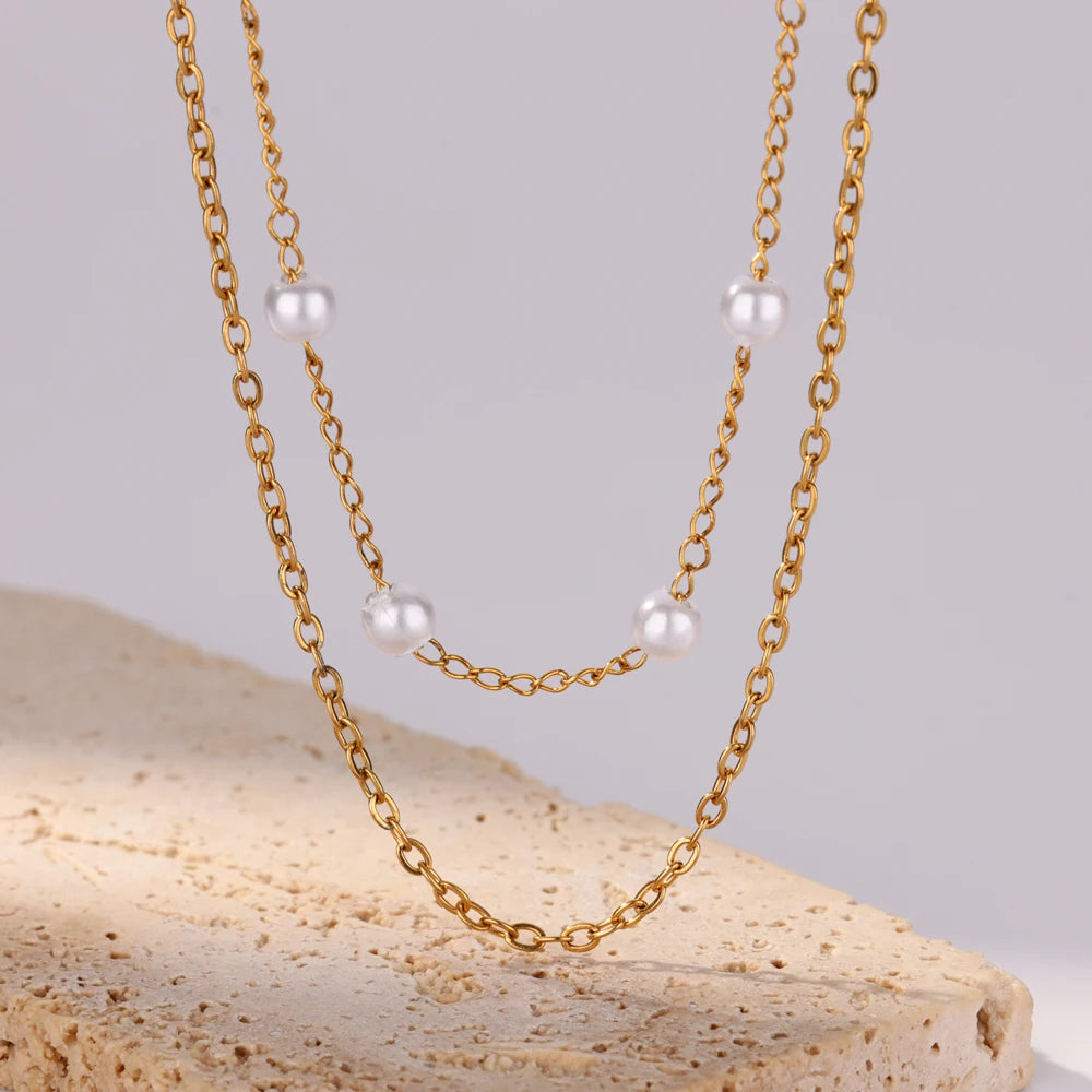 Double Layer Bohemian Colorful Bead Necklace For Women Stainless Steel Gold Color Clavicle Chain Aesthetic Boho Jewelry Gifts