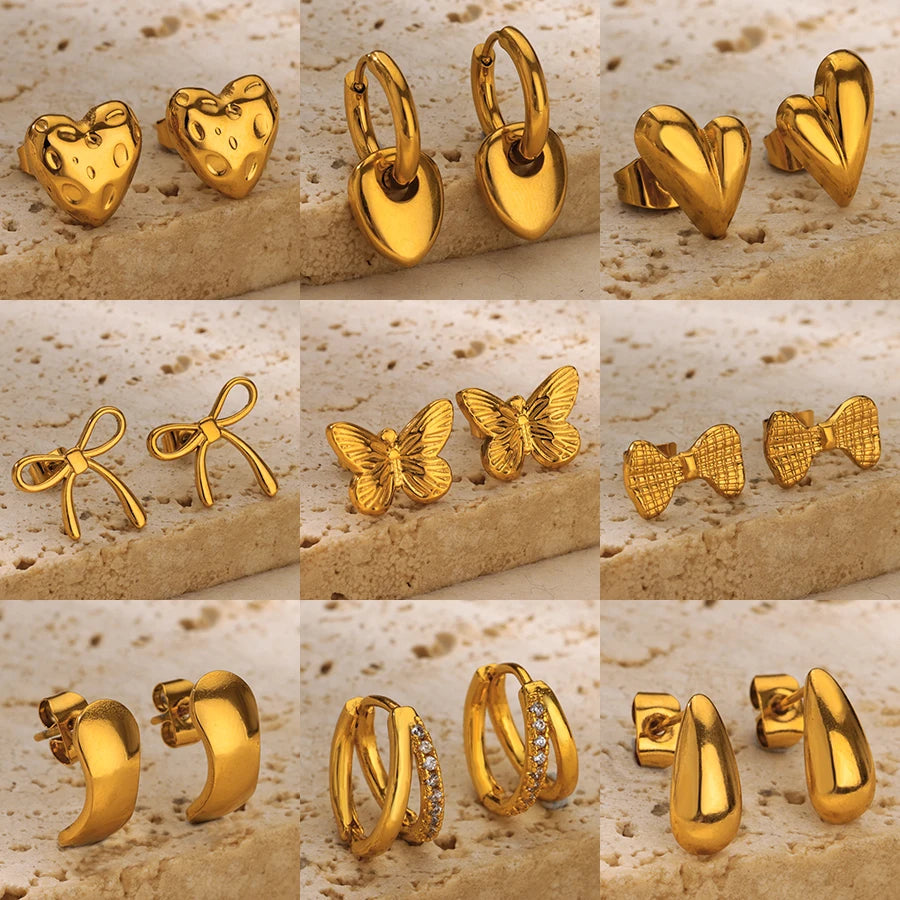 Fashion Bowknot Butterfly Stud Earrings For Women Stainless Steel Gold Color Heart Earring Trendy Elegant Jewelry Wedding Gifts