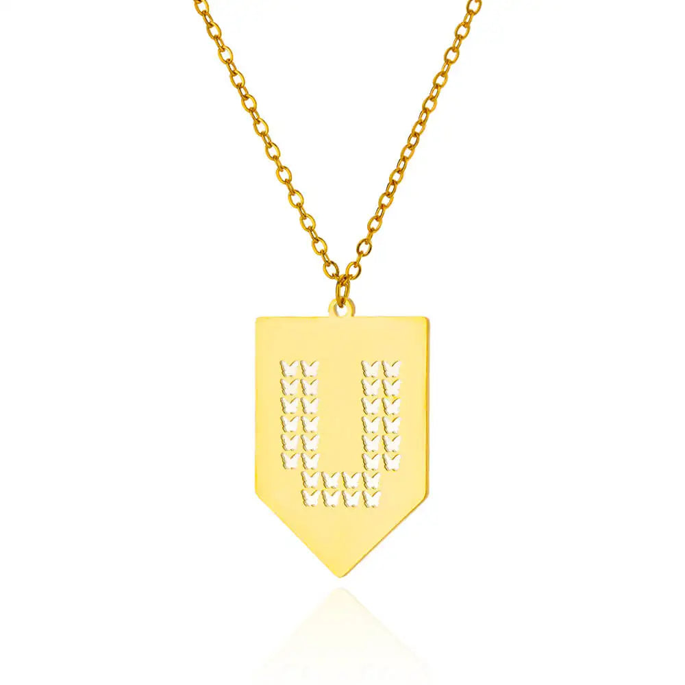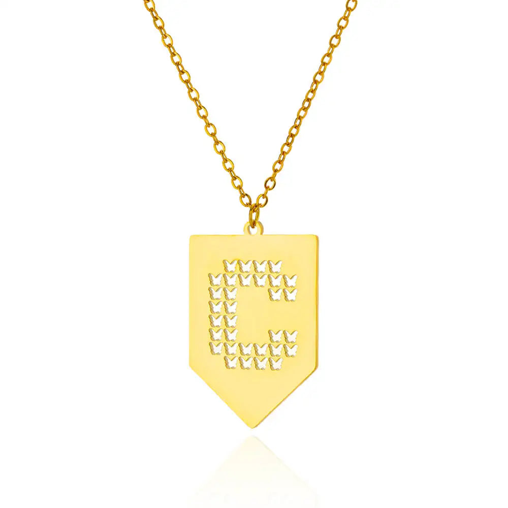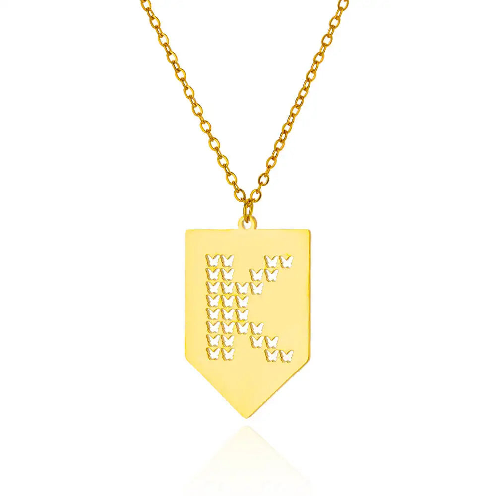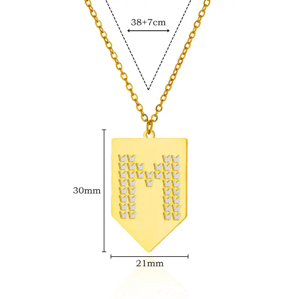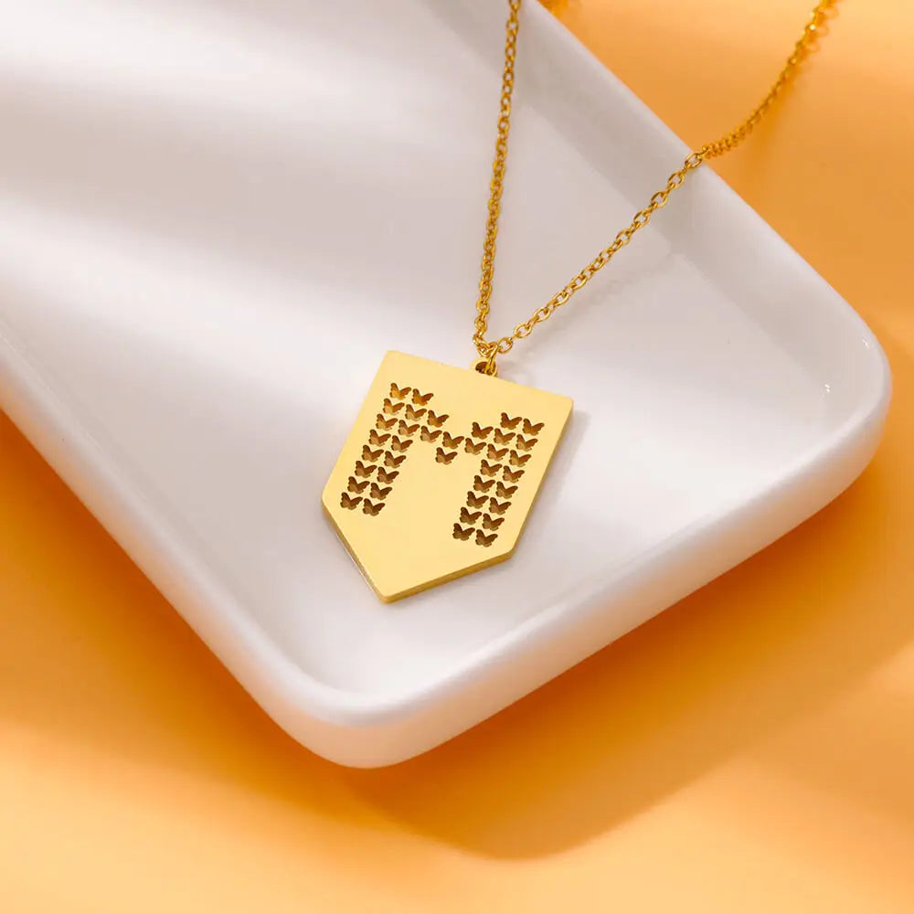 Hollow Out Butterfly Initial Letters Necklaces For Women Jewelry Stainless Steel Chain Initial Pendant Necklace Best Accessories