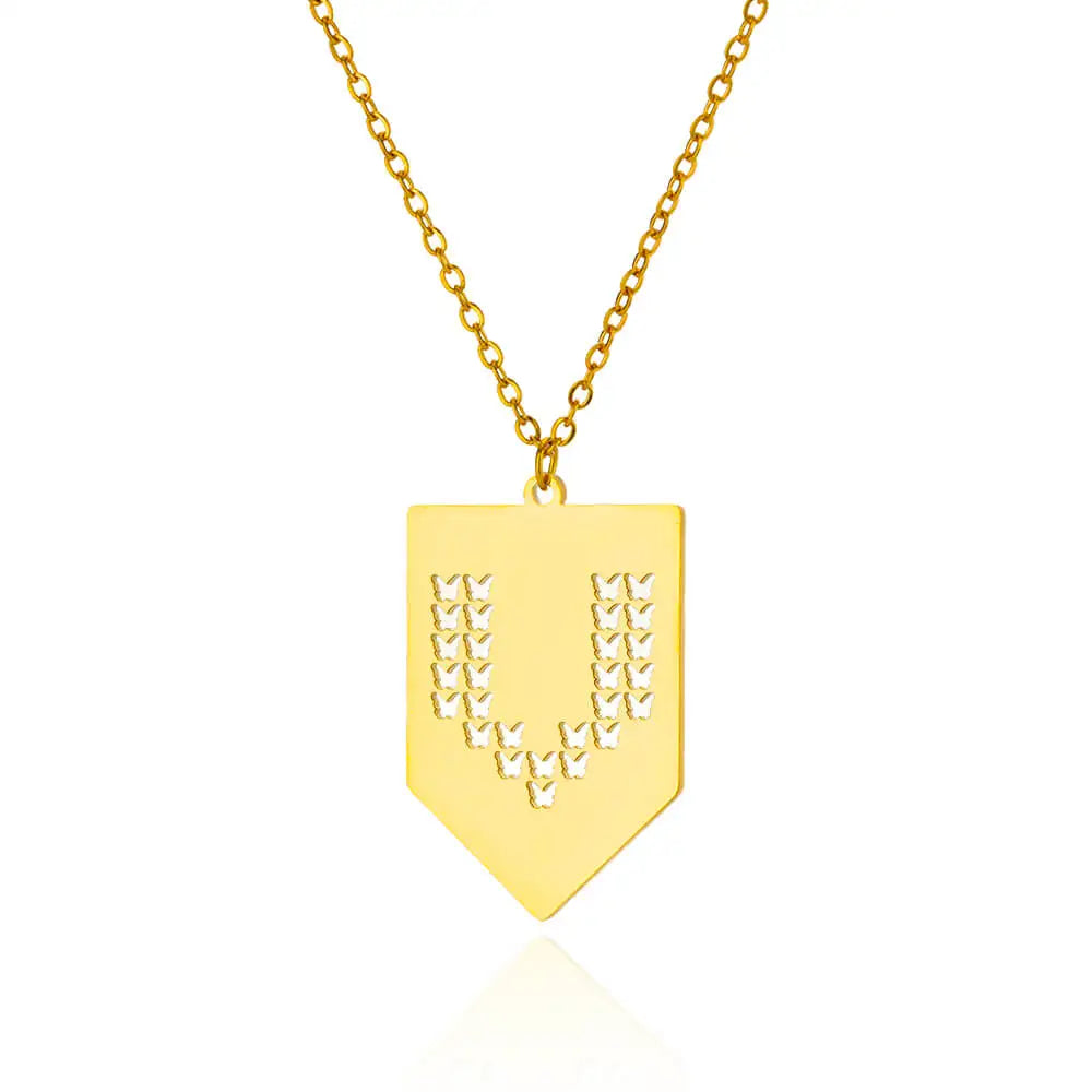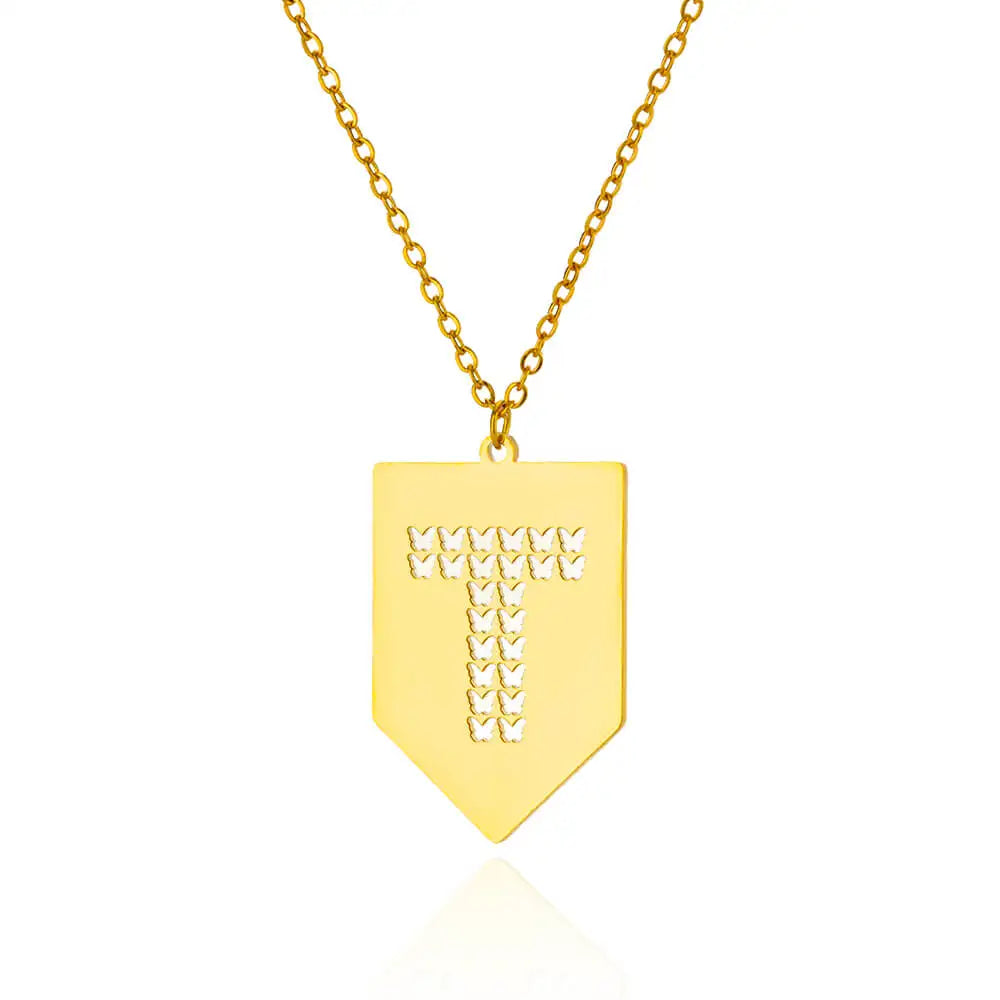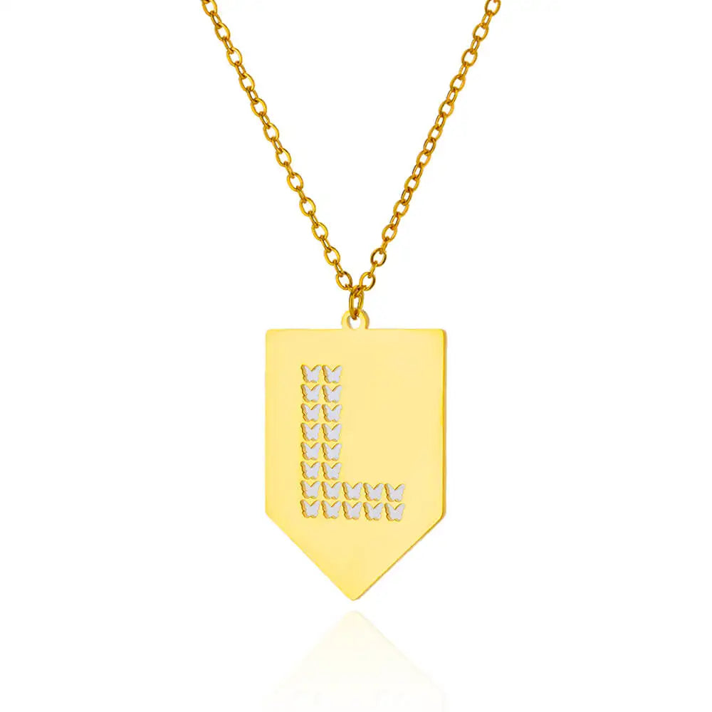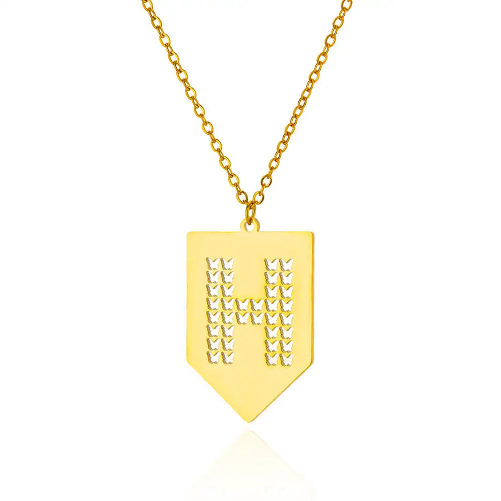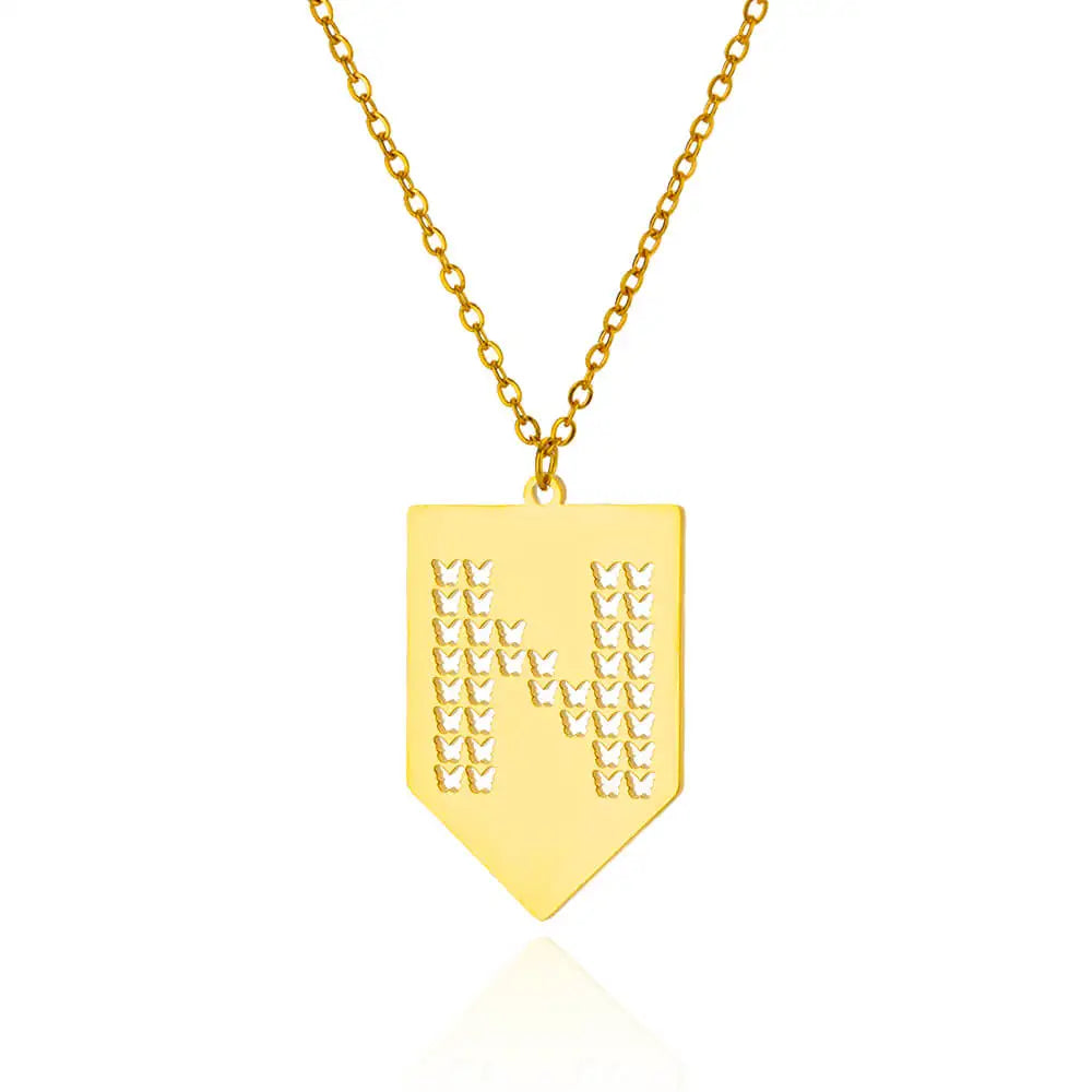 Hollow Out Butterfly Initial Letters Necklaces For Women Jewelry Stainless Steel Chain Initial Pendant Necklace Best Accessories