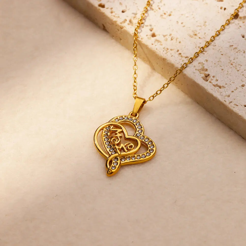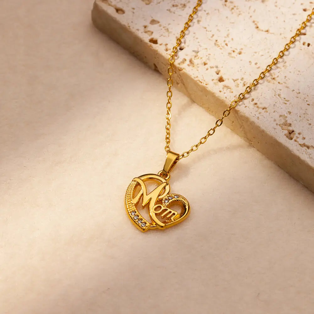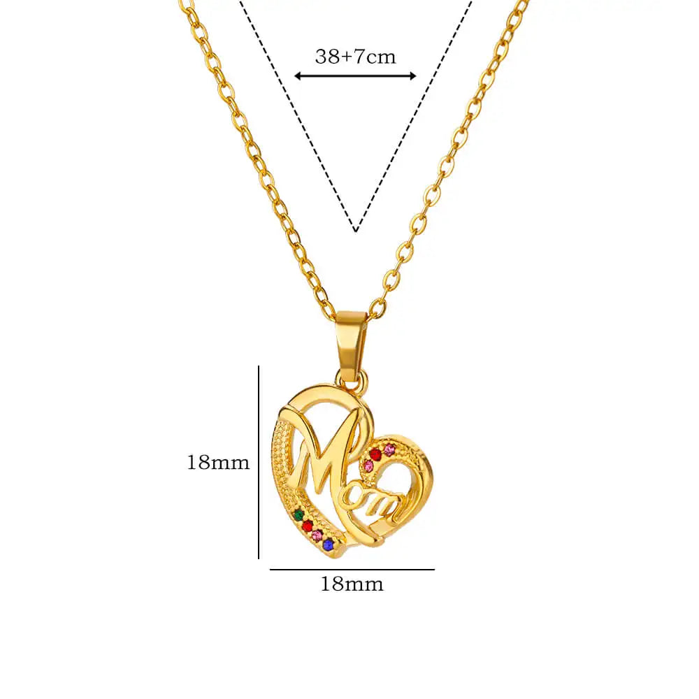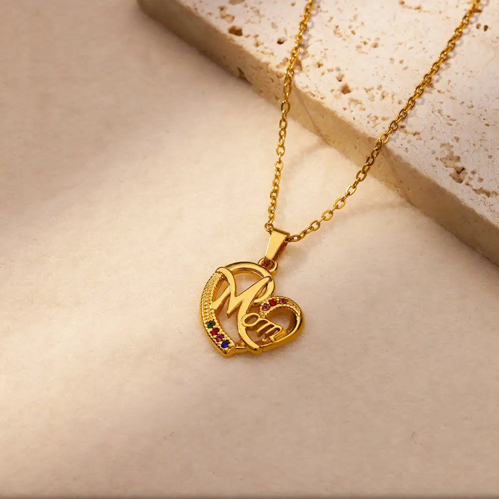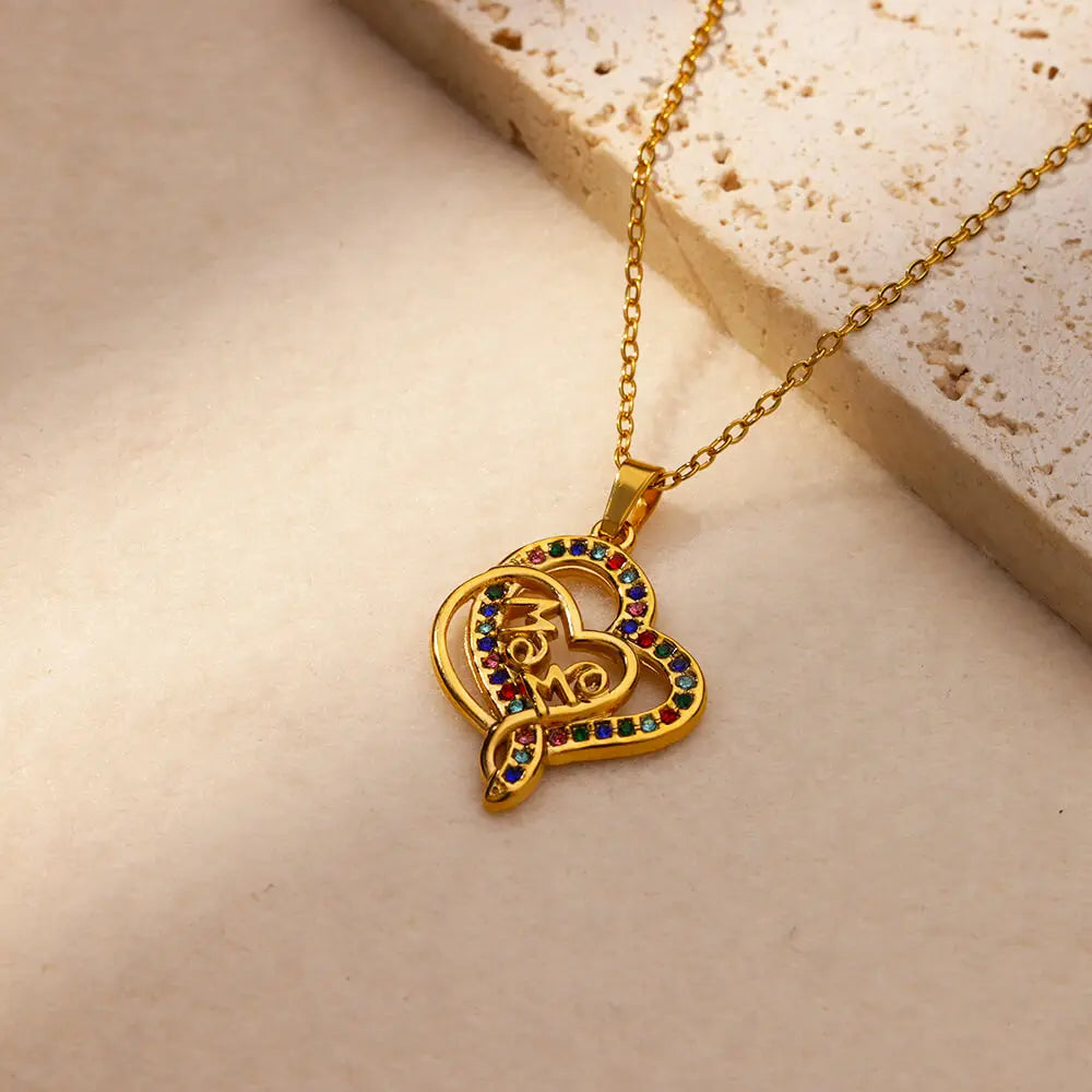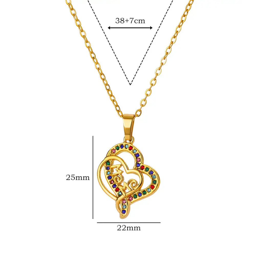 Luxury Colorful Zircon Necklaces For Women Stainless Steel Gold Color MAMA Pendant Chains Collar Choker 2024 Trendy Jewelry
