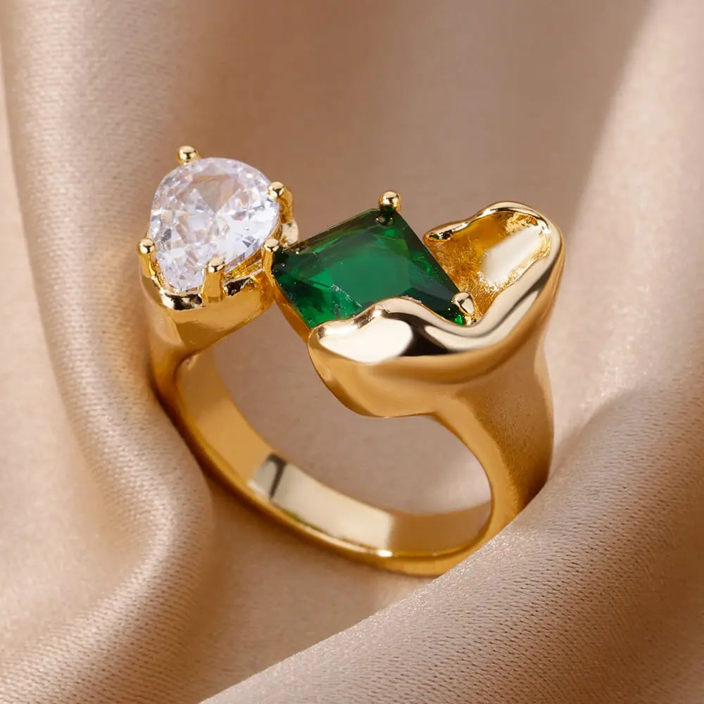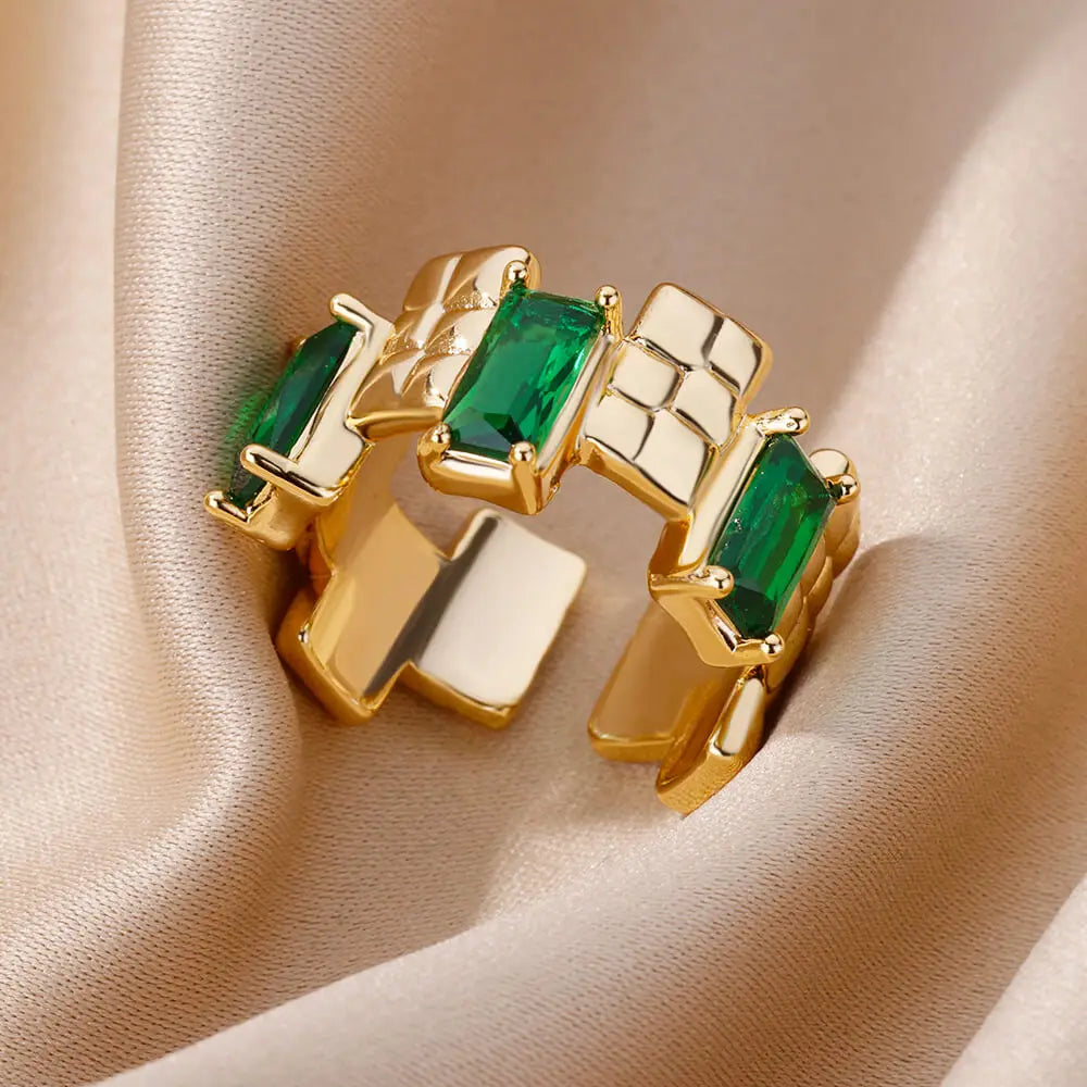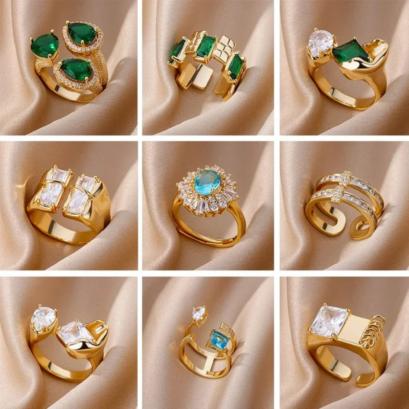 Luxury Rectangle Zircon Rings For Women Stainless Steel Gold Color Ring 2023 Trend Engagement Wedding Aesthetic Jewelry