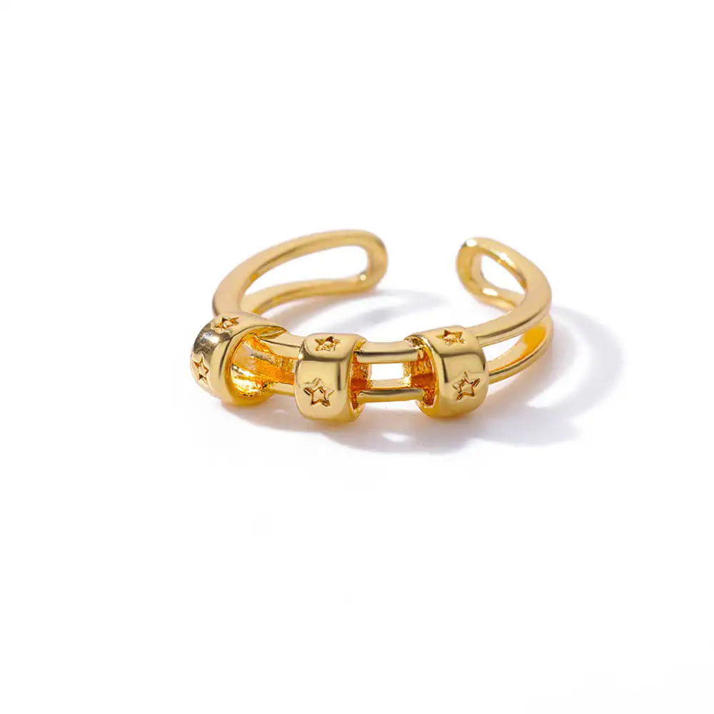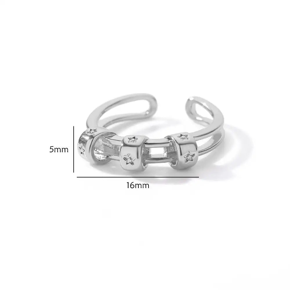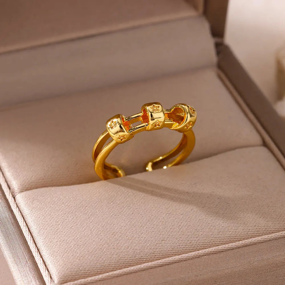 Stainless Steel Double Layer Hollow Rings For Women Gold Color Star Ring 2023 Trend Aesthetic Wedding Jewerly Gift