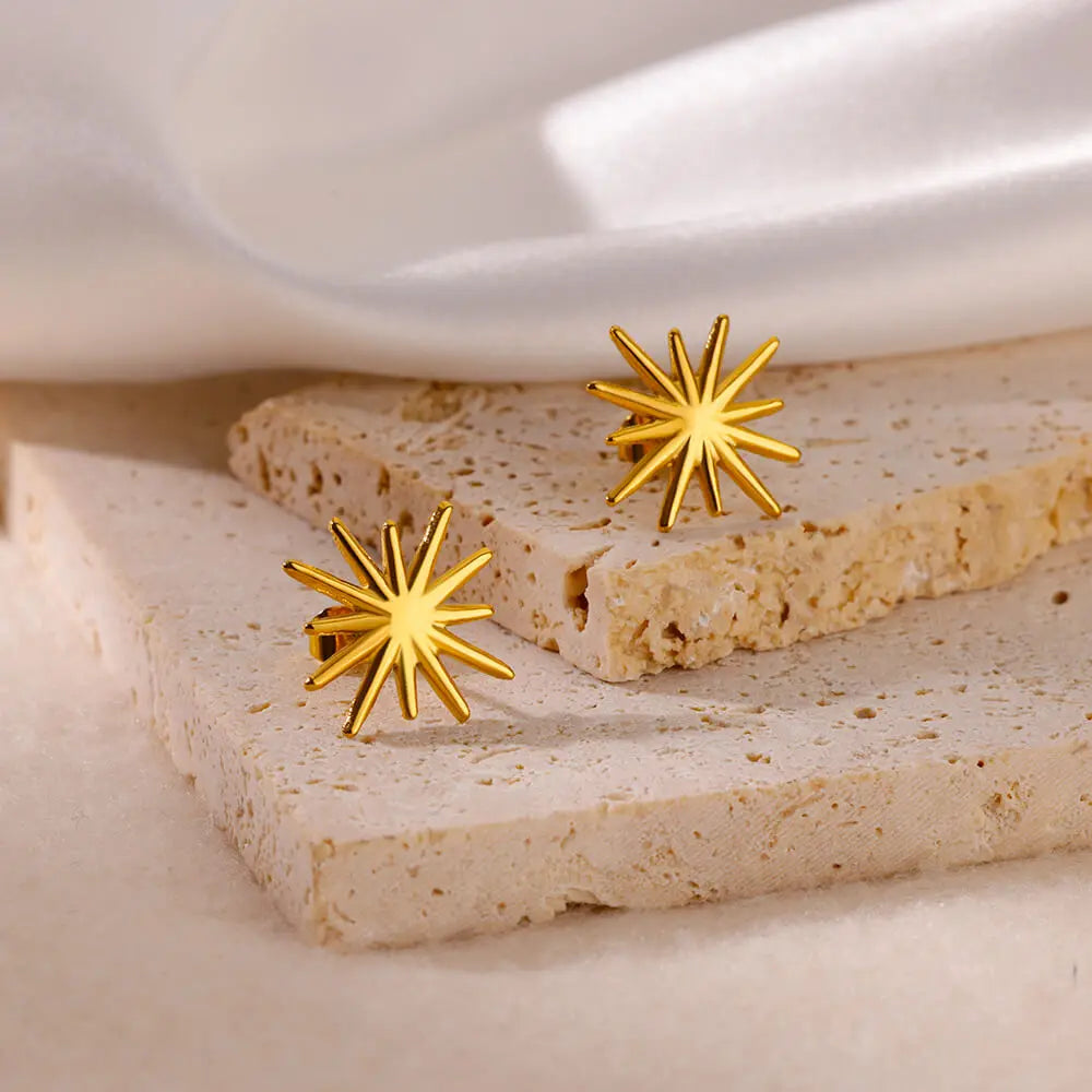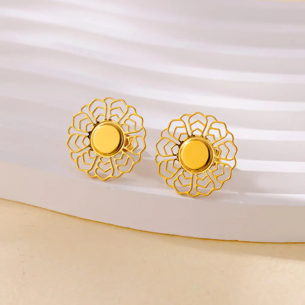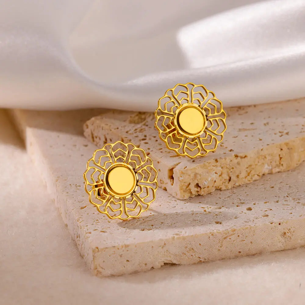 Stainless Steel Earings For Women Fashion Gold Color Flower Stud Earrings Jewelry Piercing Ear Accessories Party Gift